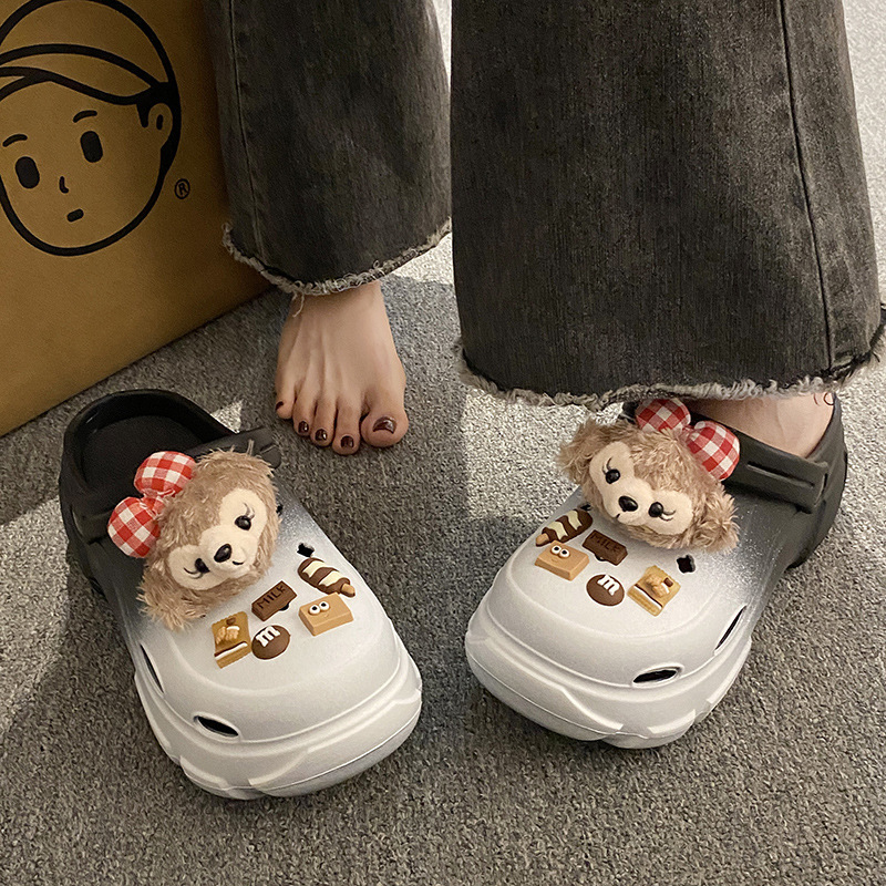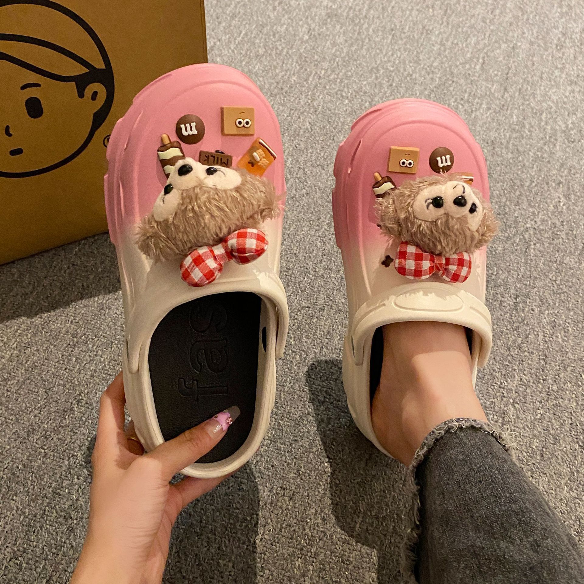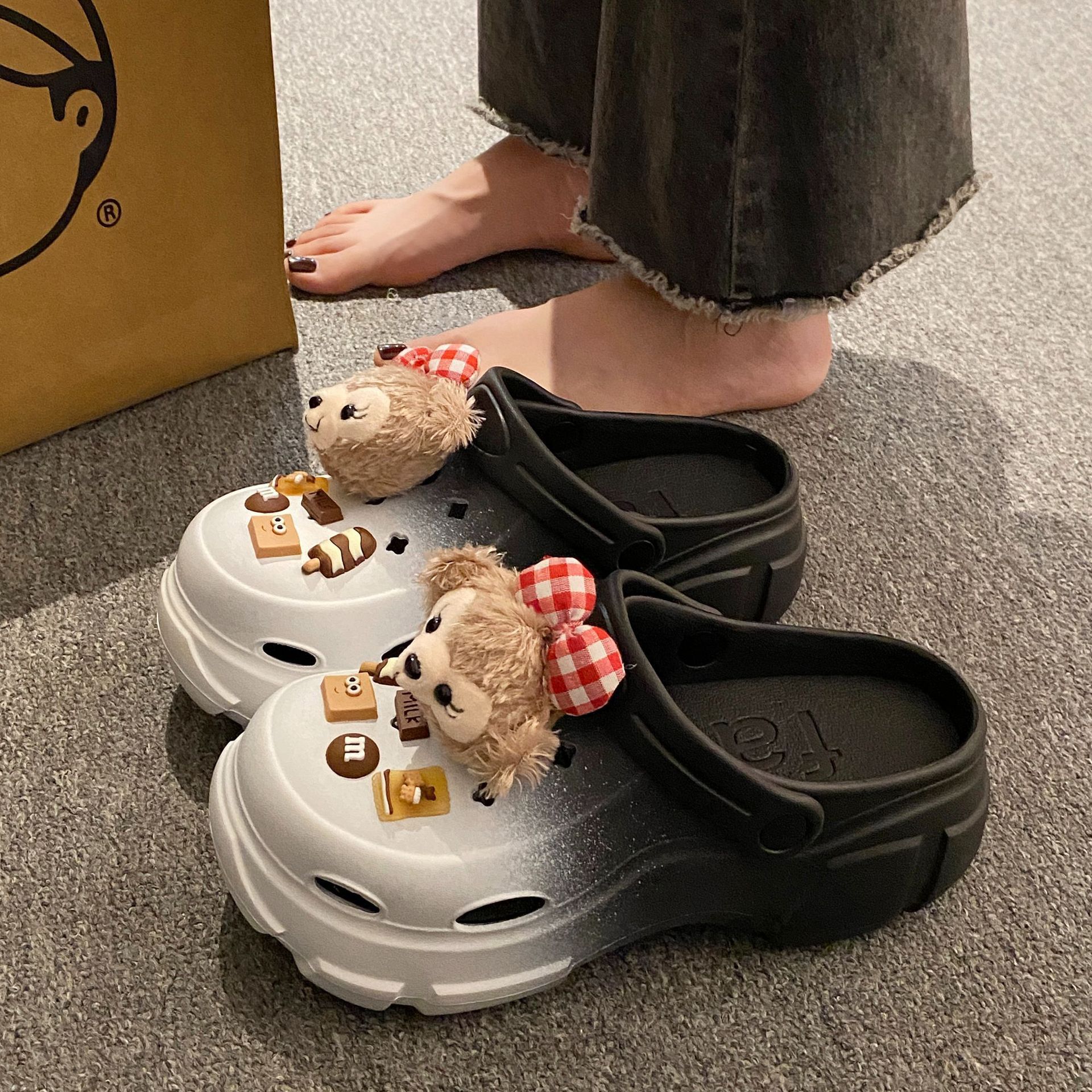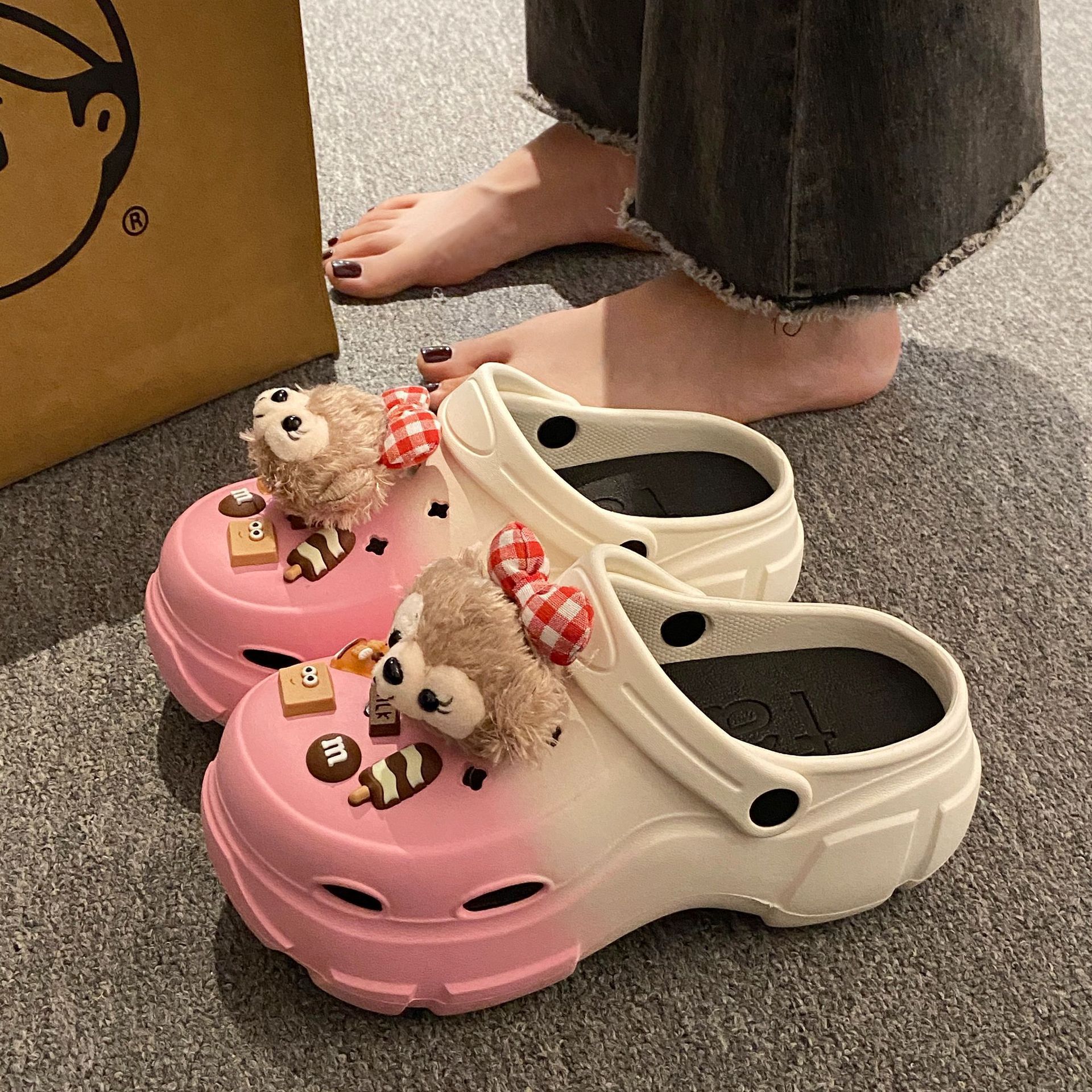 网红新款渐变色松糕厚底水钻洞洞鞋女夏季新款高跟包头拖鞋