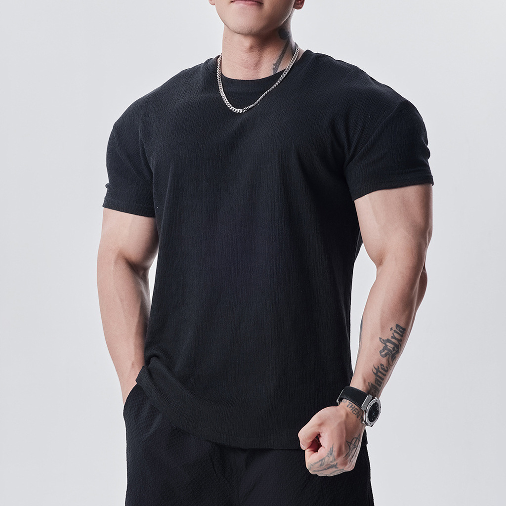 亚麻风休闲宽松收袖口健身跑步户外纯色短袖男运动T恤衫纯色夏季