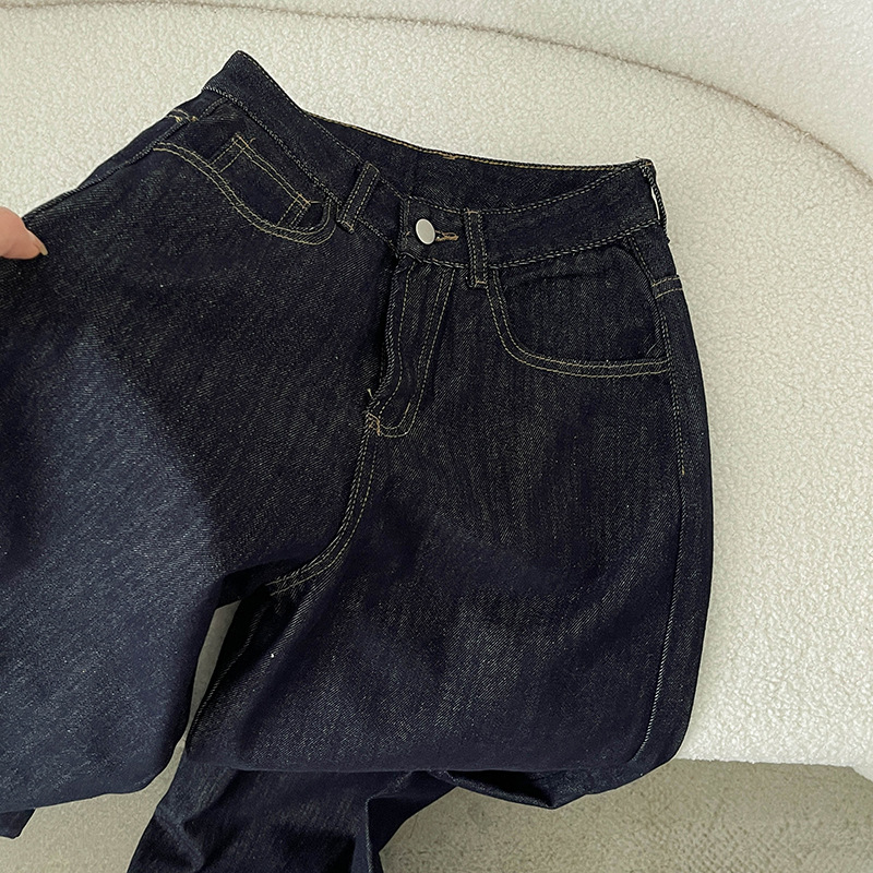 设计感阔腿牛仔裤女夏季高腰显瘦宽松垂感深色直筒拖地裤长裤