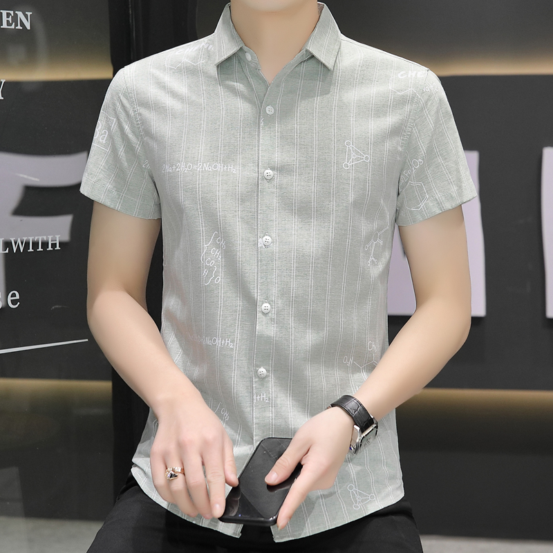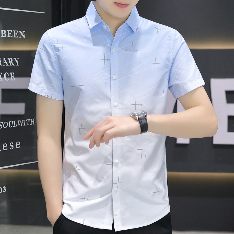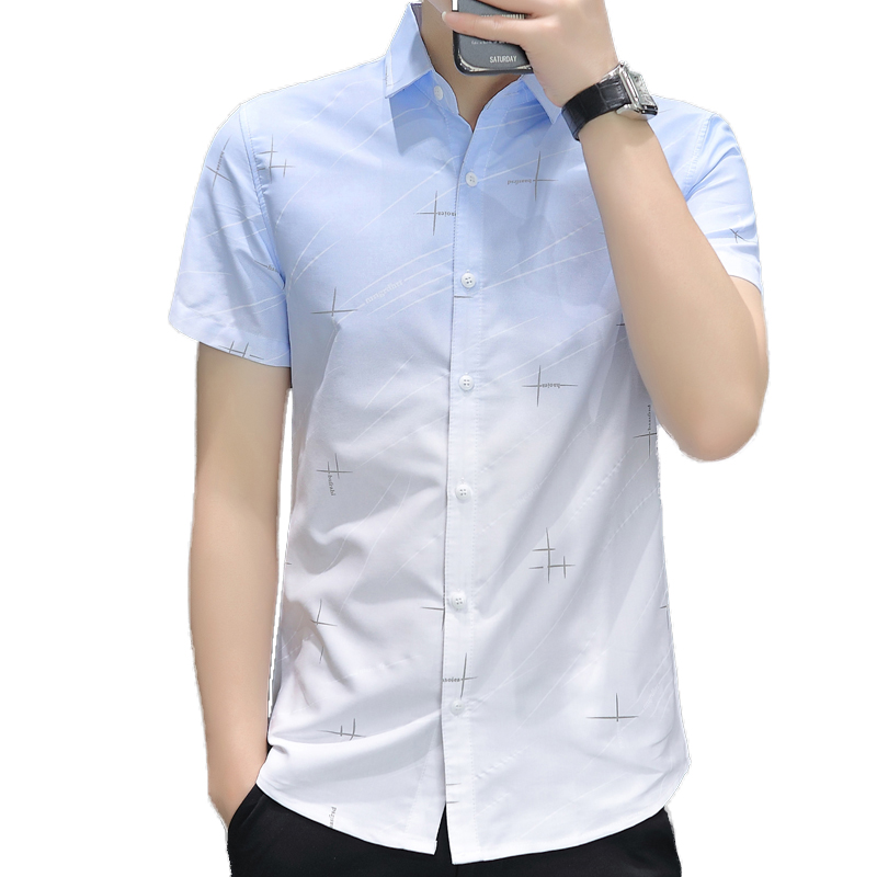 冰丝短袖衬衫男士夏季超薄款渐变色休闲衬衣半袖方领寸衫免烫抗皱