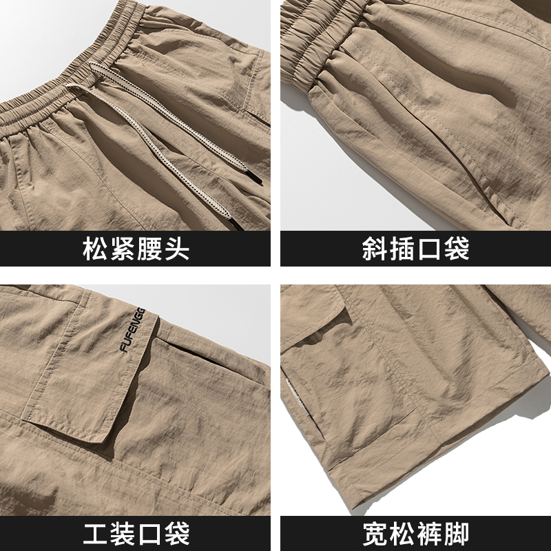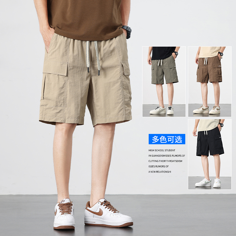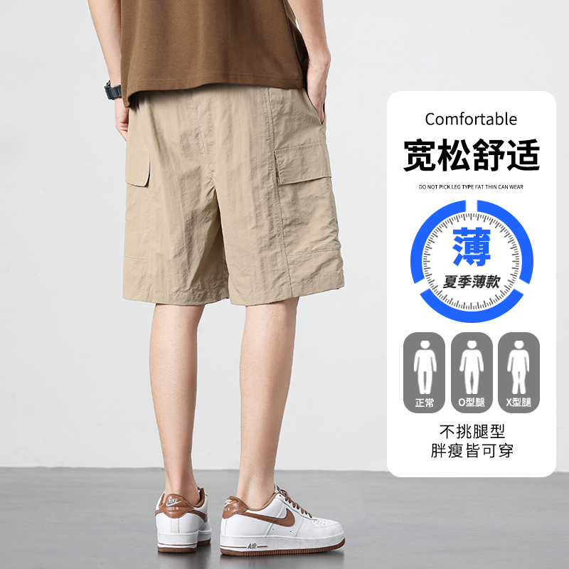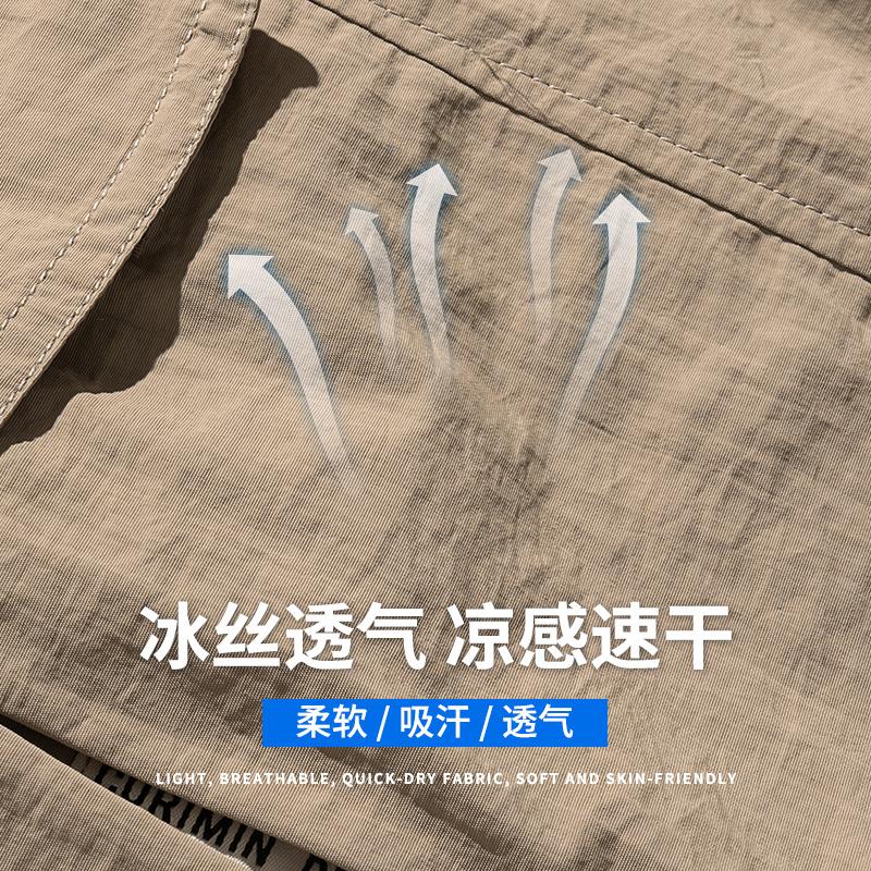 美式短裤男士夏季薄款2025新款工装五分裤男款冰丝速干休闲中裤子
