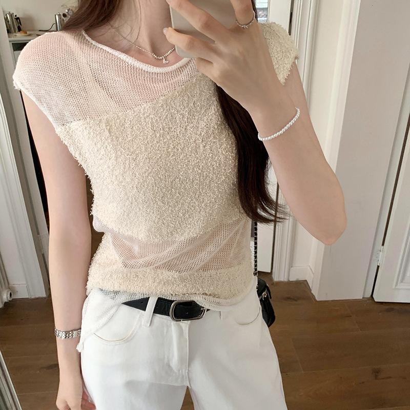 不对称设计感镂空拼接无袖针织衫女夏季新款法式辣妹薄款上衣