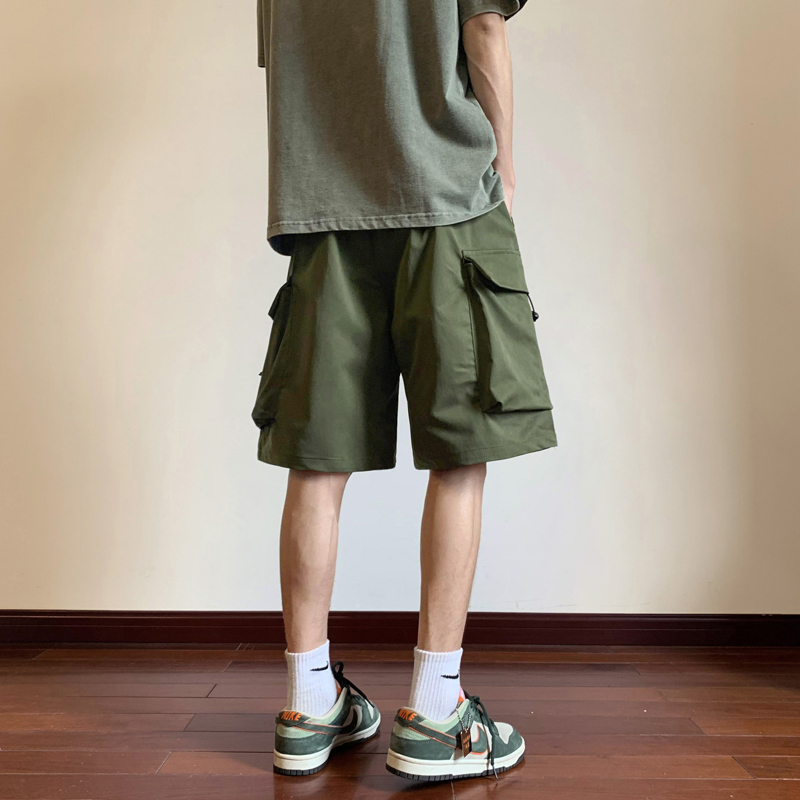 街头机能风嘻哈宽松口袋冲锋裤男士户外工装短裤直筒运动五分裤衩