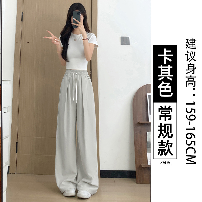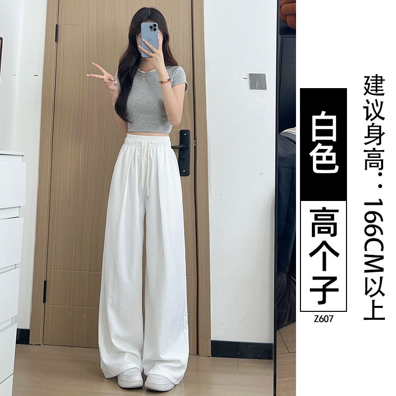 白色冰丝阔腿裤女2025新款夏季薄款垂感山本裤宽松休闲速干运动裤