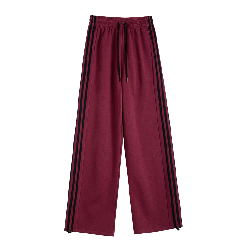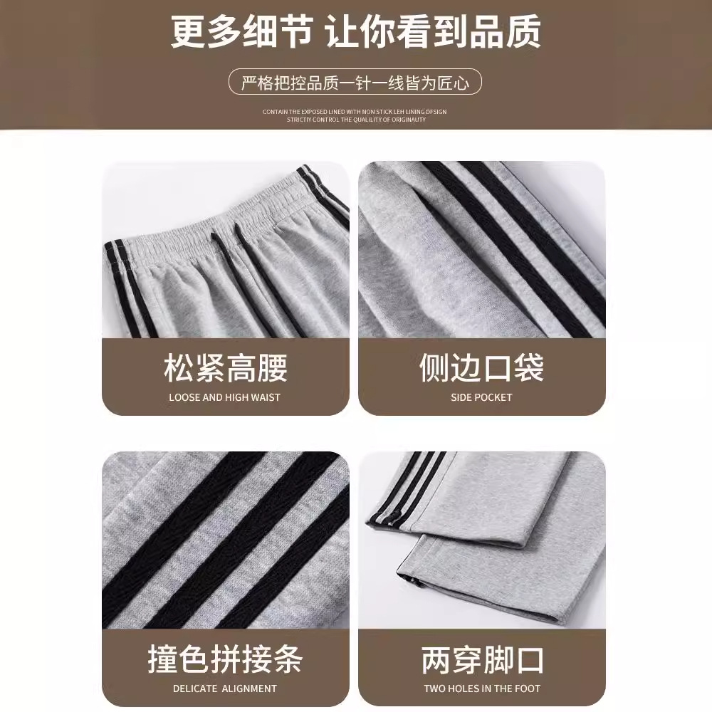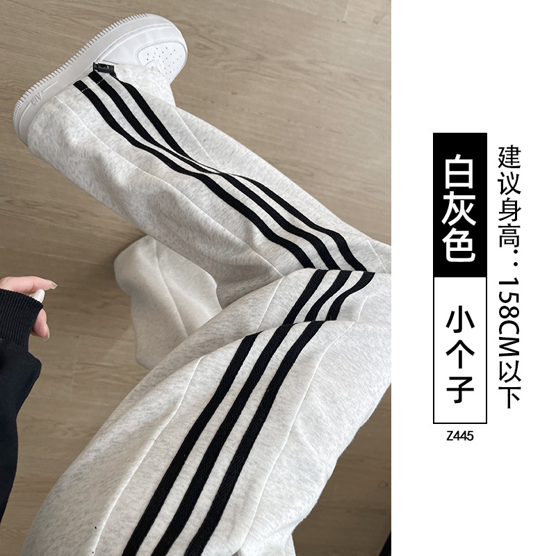 加绒运动裤子女春秋季2025新款休闲条纹卫裤小个子宽松直筒阔腿裤