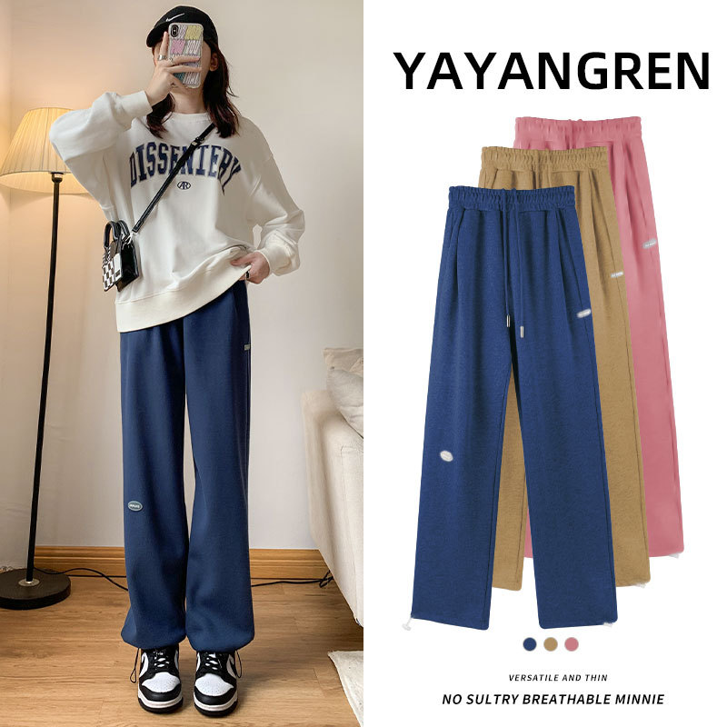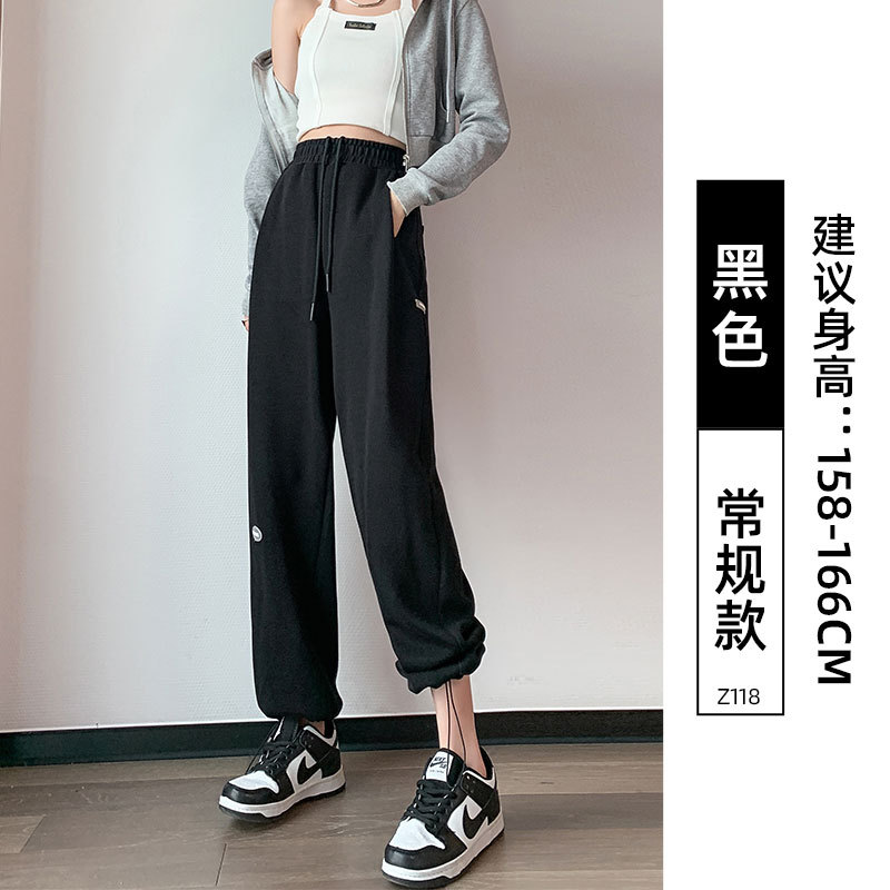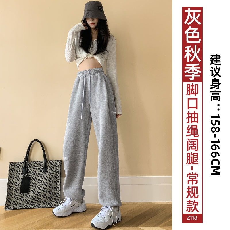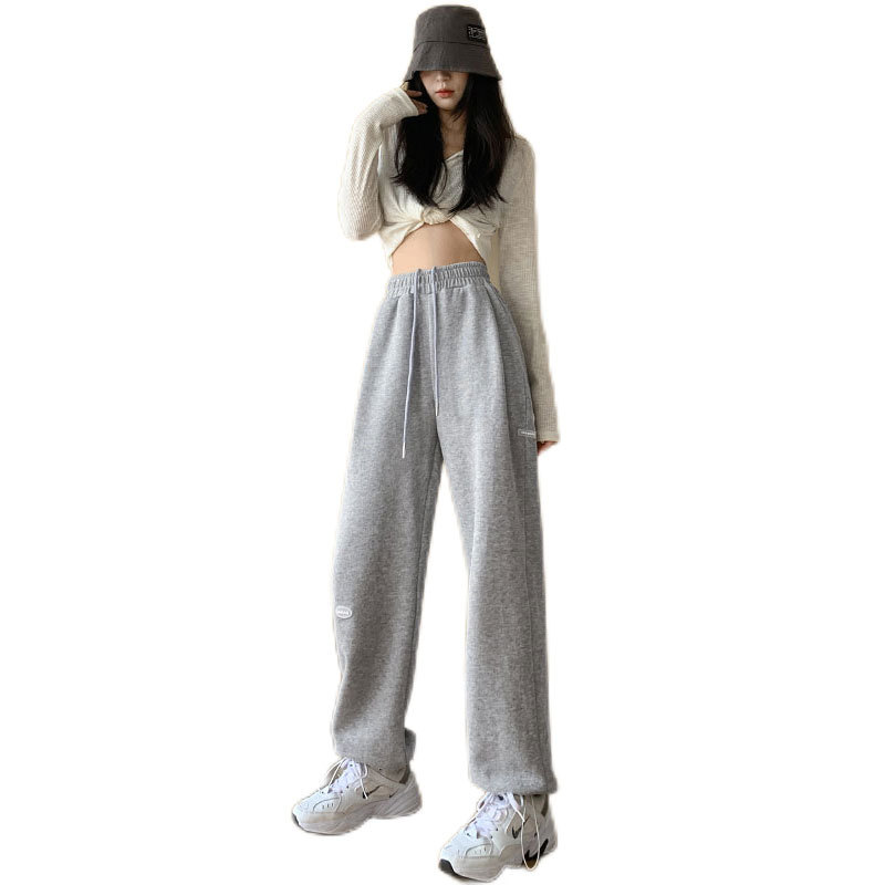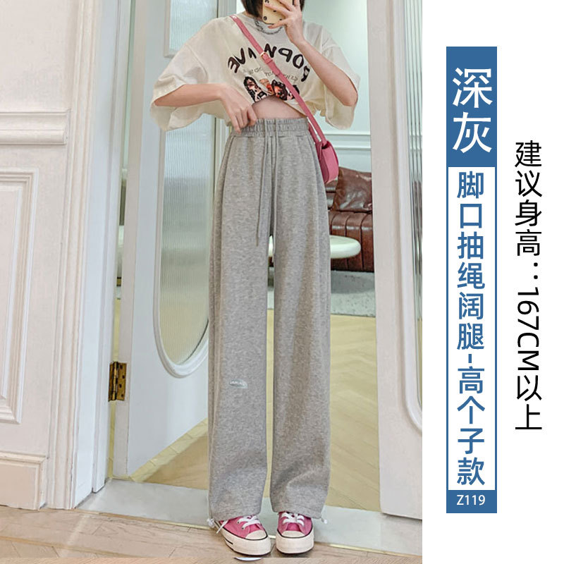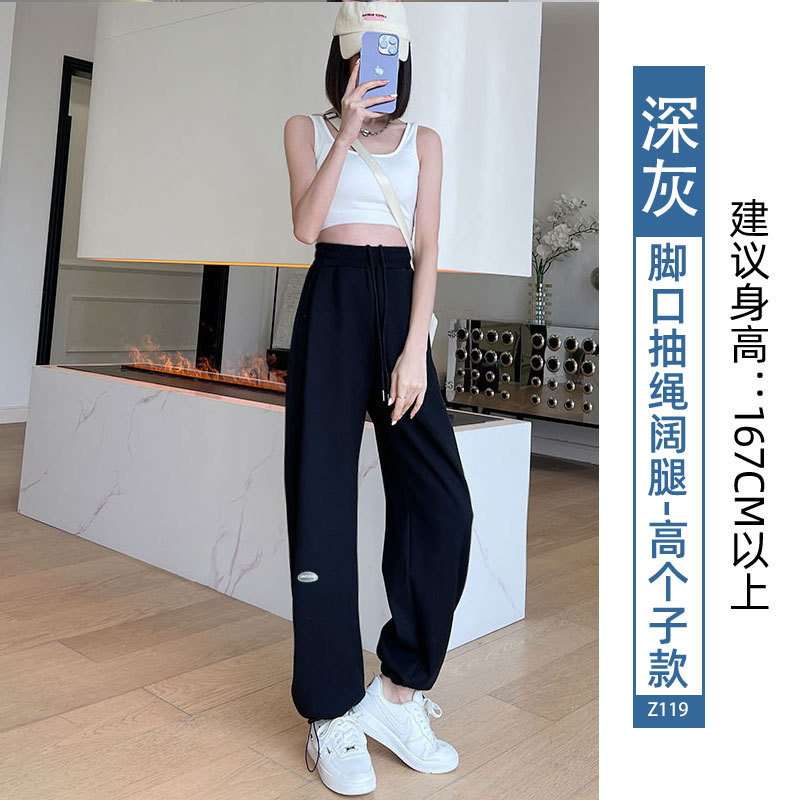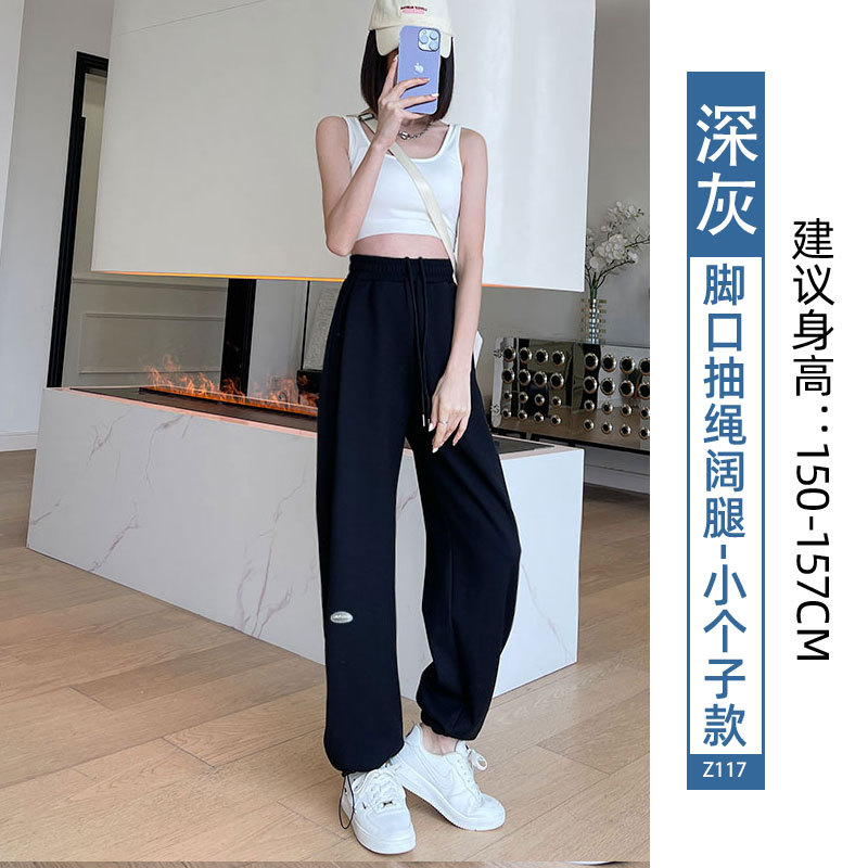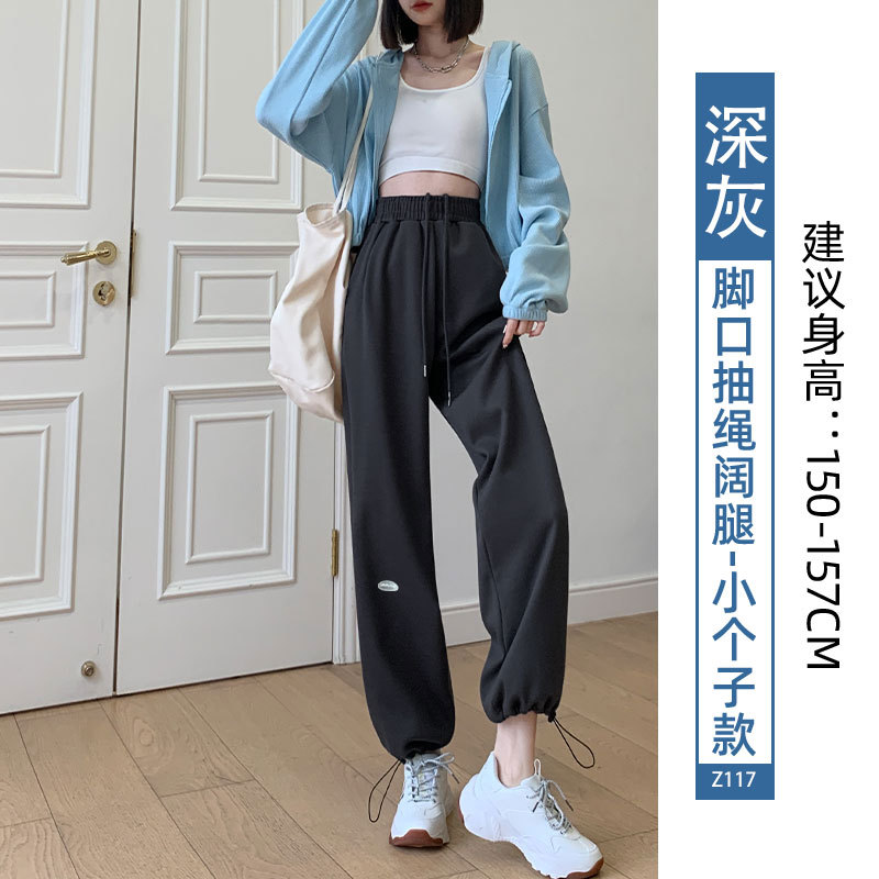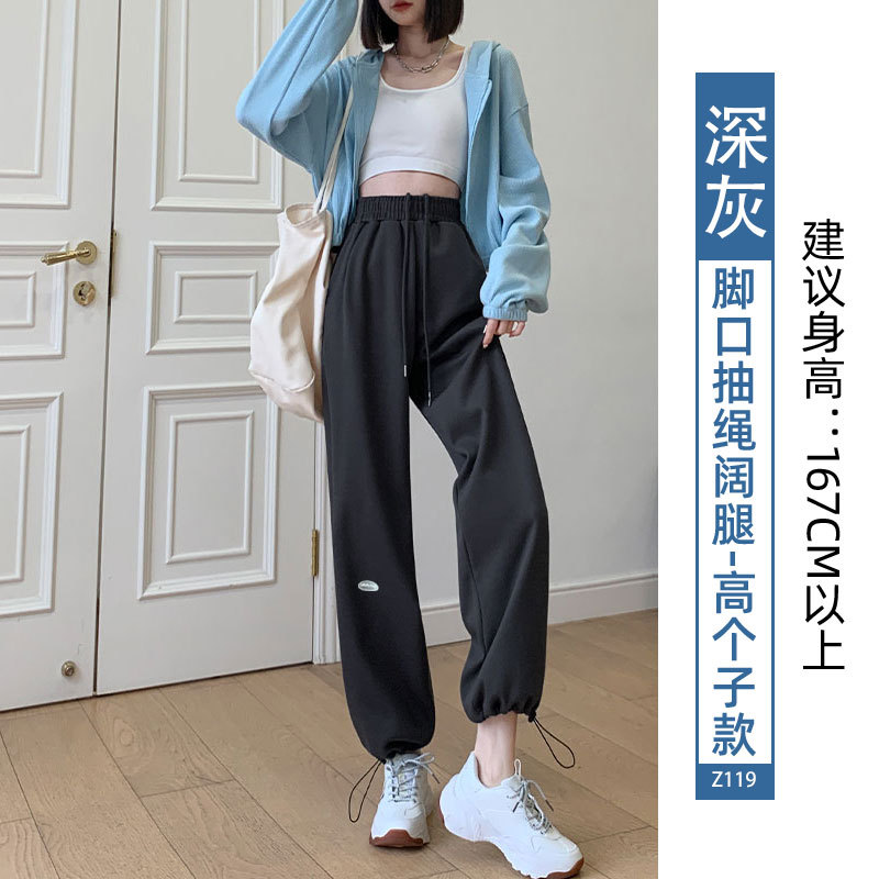 运动裤子女款2025新款束脚春秋季薄款宽松休闲阔腿小个子灰色卫裤
