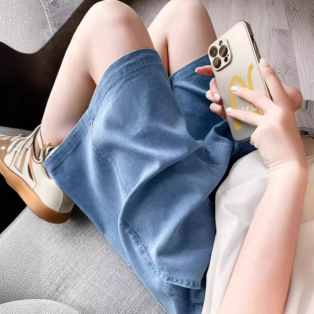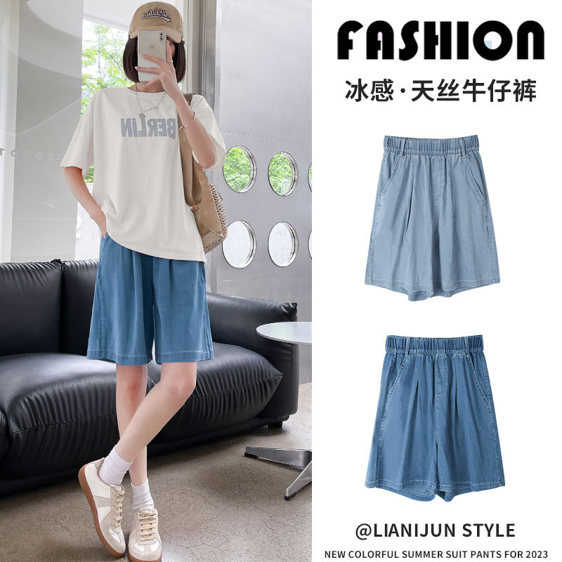 天丝牛仔短裤女夏季薄款高腰显瘦2025新款五分冰丝阔腿裤a字热裤