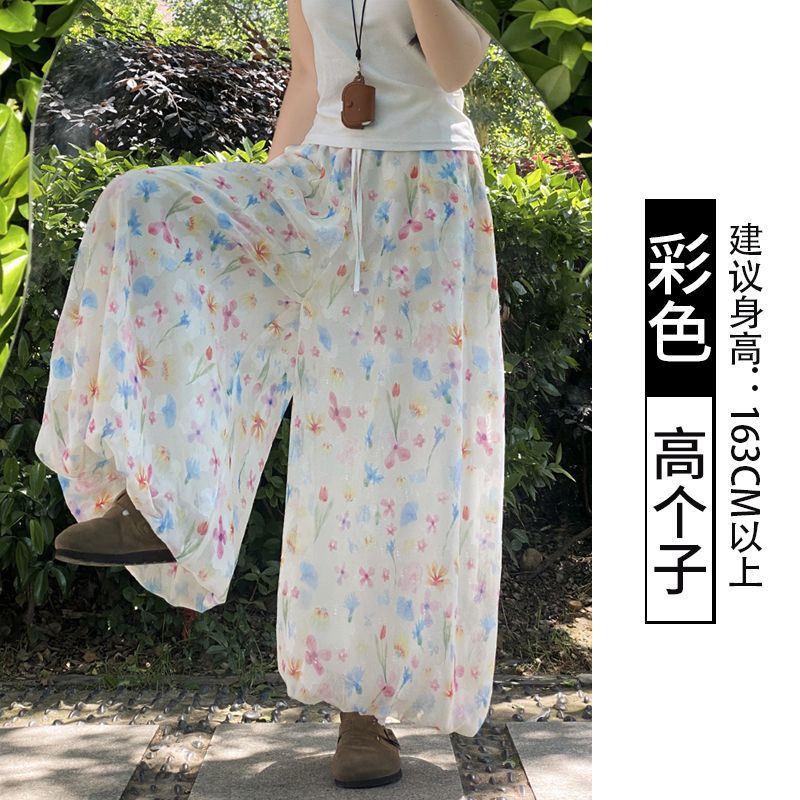 彩色花苞阔腿裤女夏季薄2025新款高腰垂感小个子直筒休闲冰丝裙裤