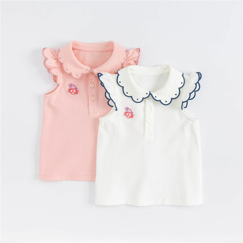 女童夏装背心T恤宝宝洋气儿童个性潮韩版娃娃领花边可爱时髦上衣