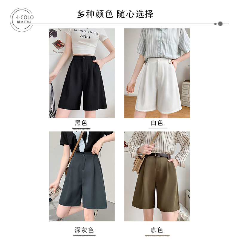 咖色西装短裤女夏季薄款高腰宽松显瘦阔腿休闲小个子五分六分中裤