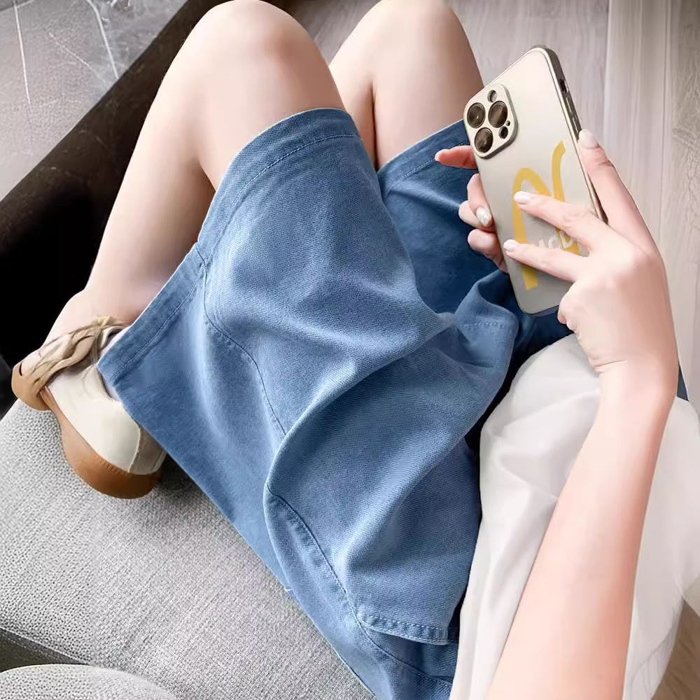 天丝牛仔短裤女夏季薄款新款宽松直筒中裤高腰a字显瘦五分裤