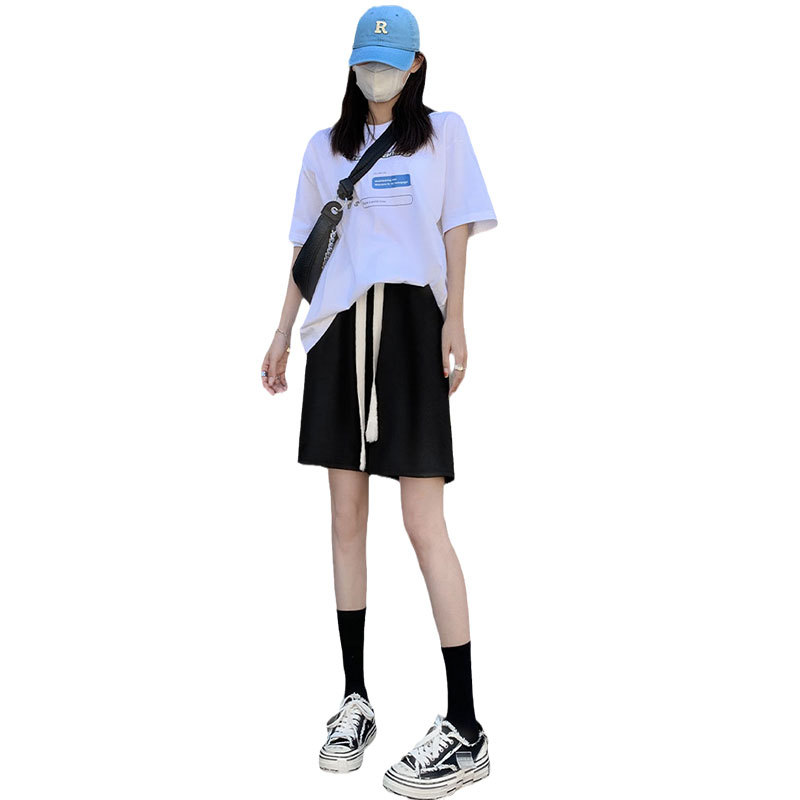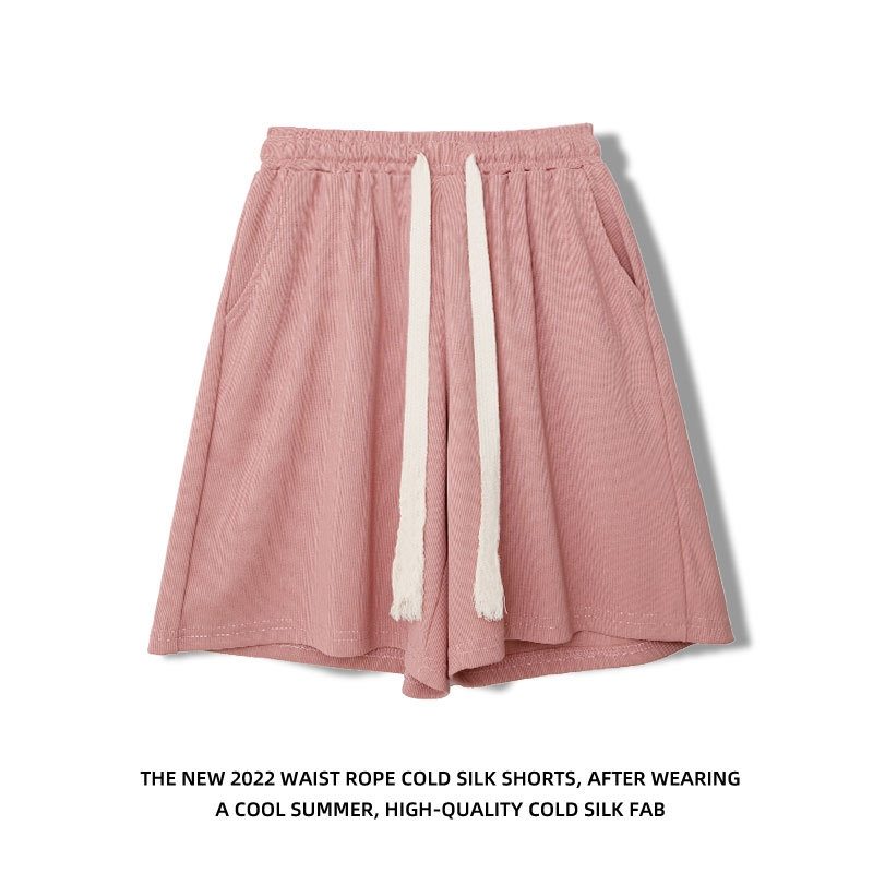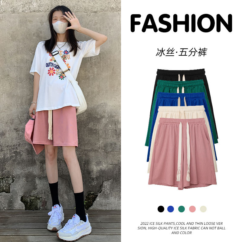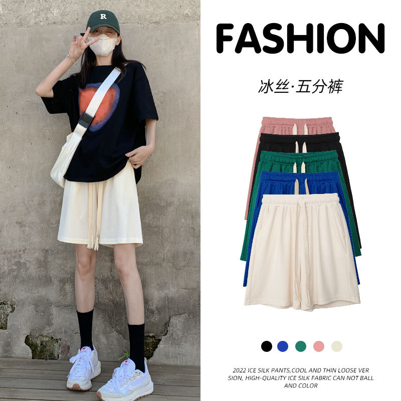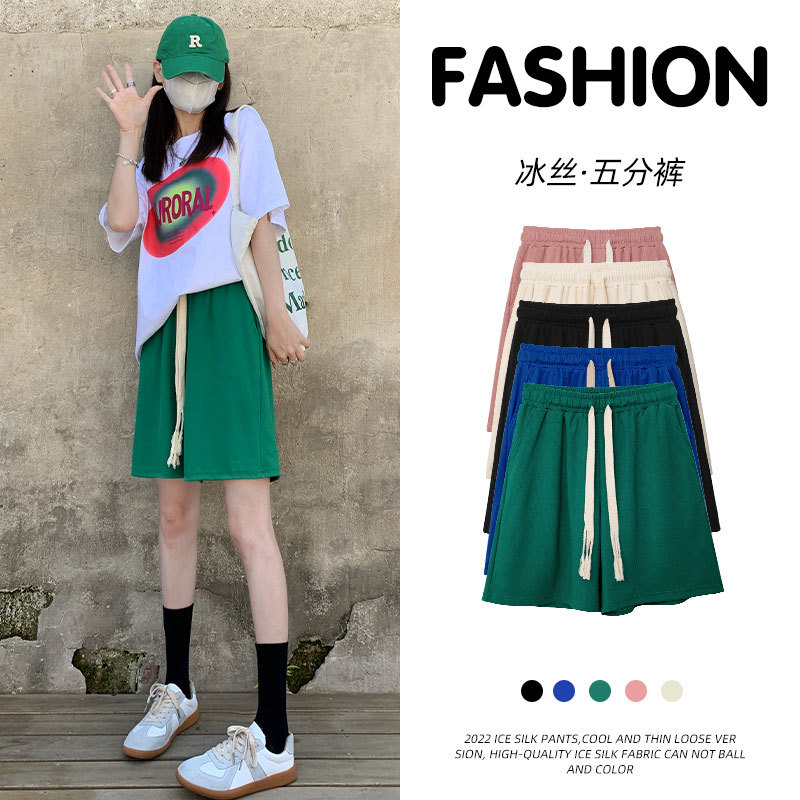 冰丝运动短裤女裤子夏季薄款宽松直筒显瘦高腰休闲百搭阔腿五分裤