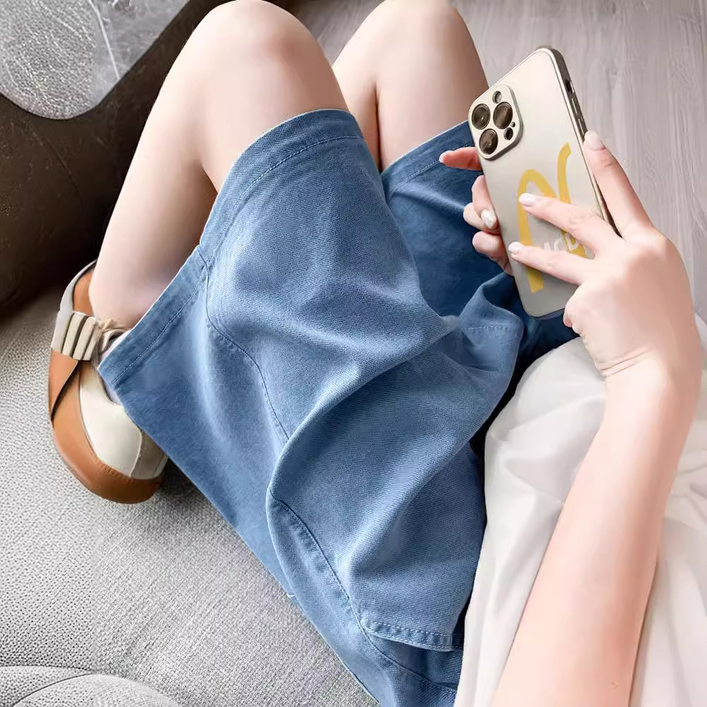 天丝牛仔短裤女新款夏季薄款高腰显瘦宽松夏天冰丝阔腿五分裤