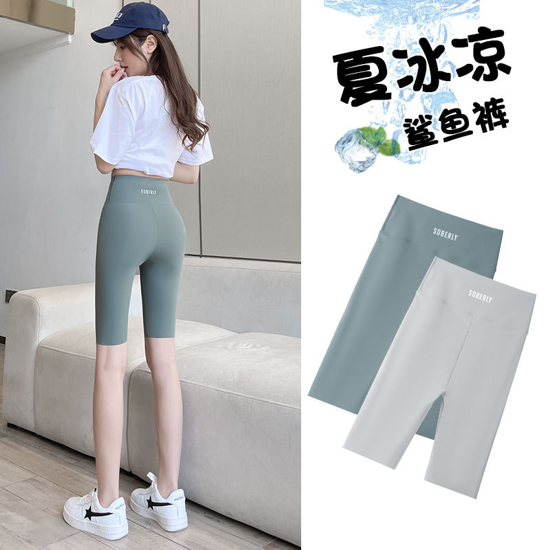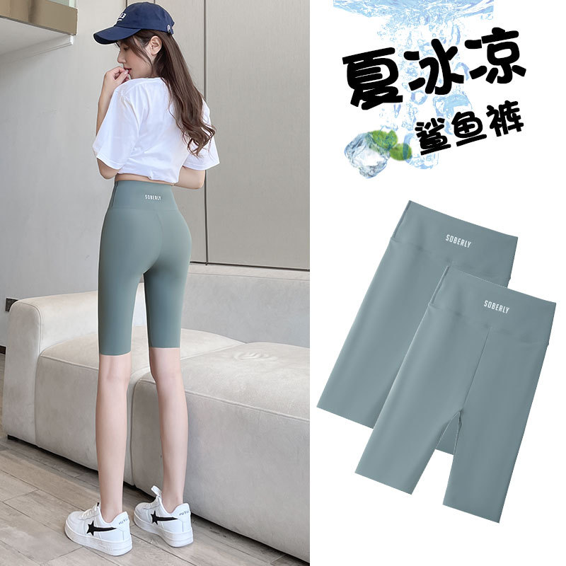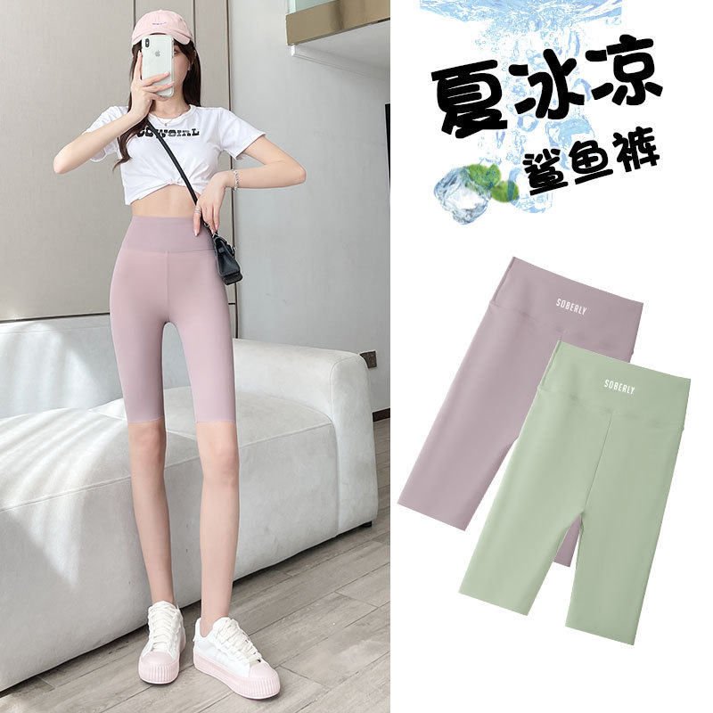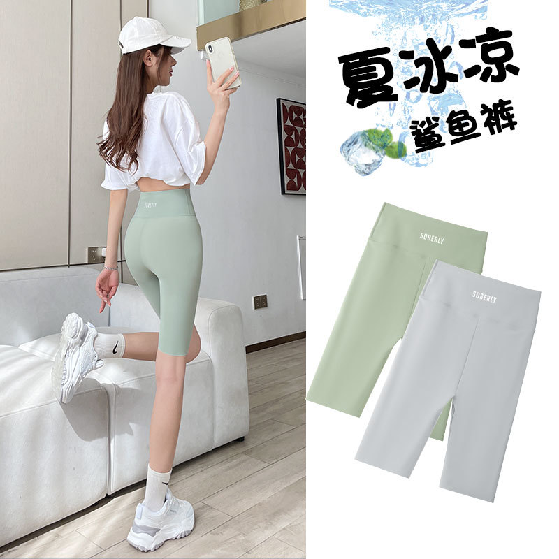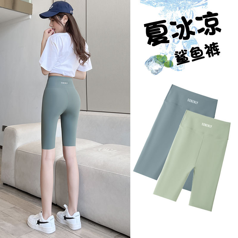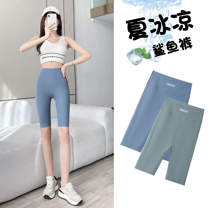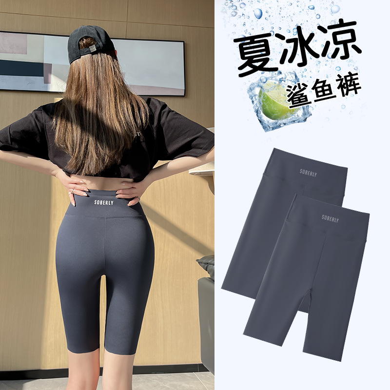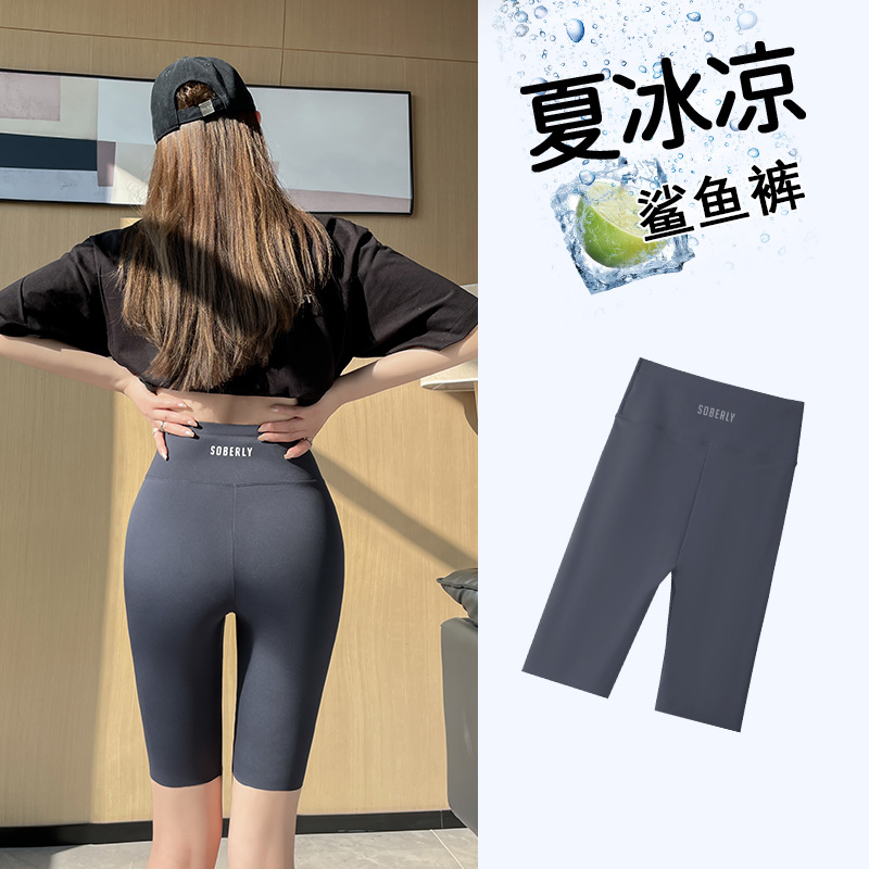 五分瑜伽裤夏季薄款2025新款外穿女健身短款小个子冰丝提臀鲨鱼裤