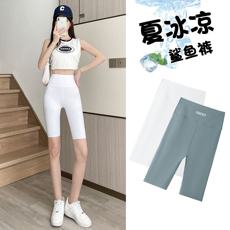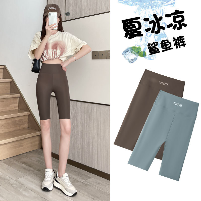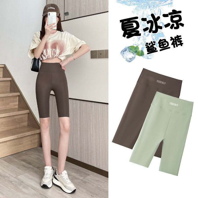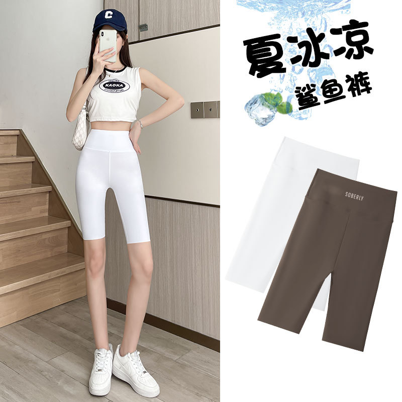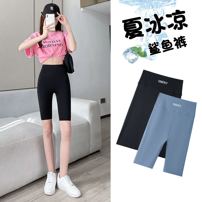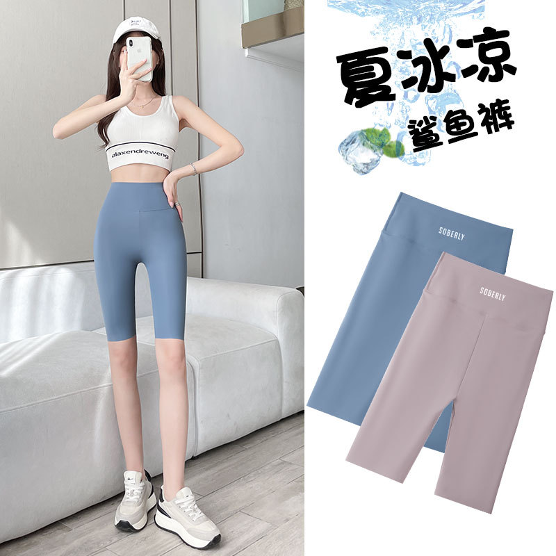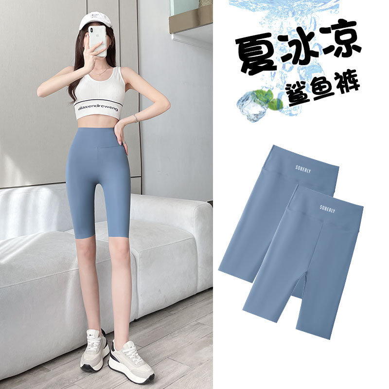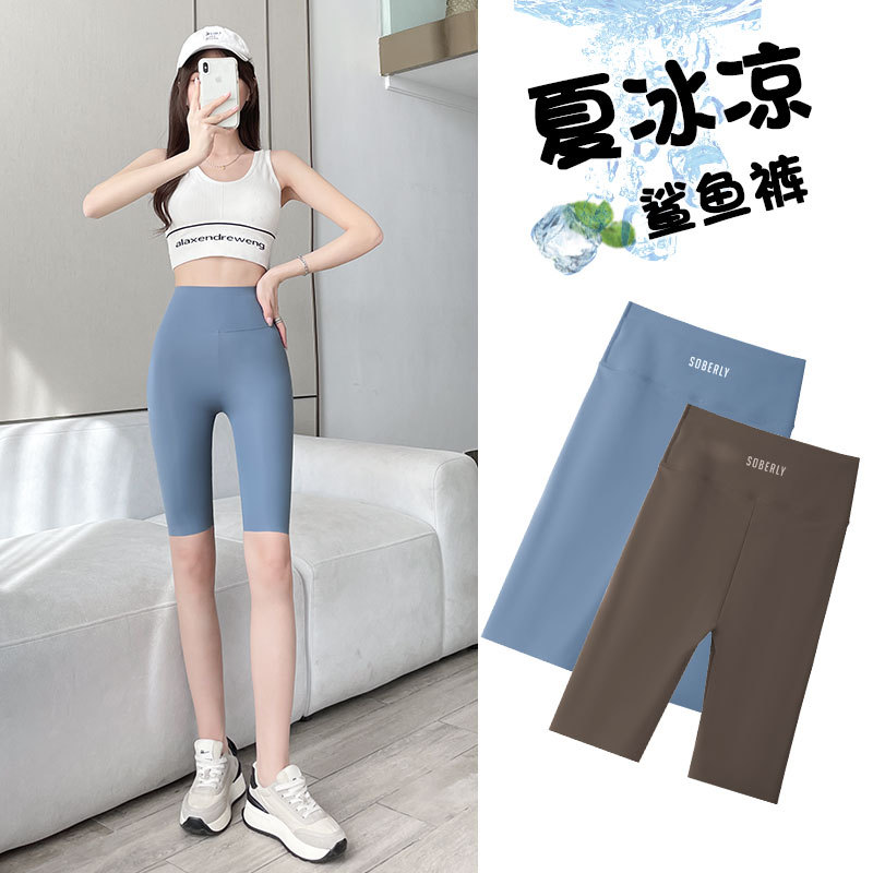五分瑜伽裤夏季薄款2025新款外穿女健身短款小个子冰丝提臀鲨鱼裤