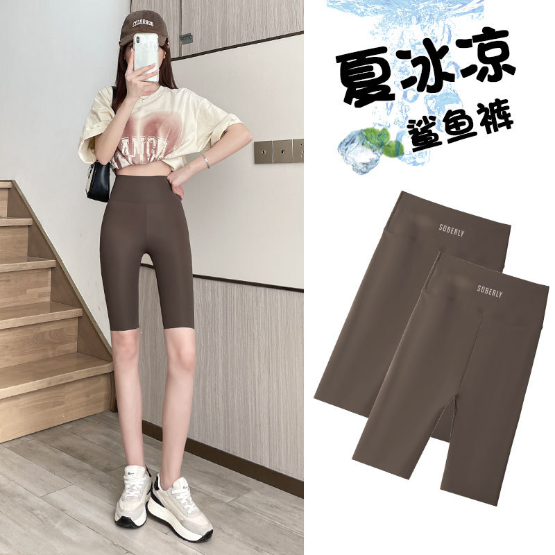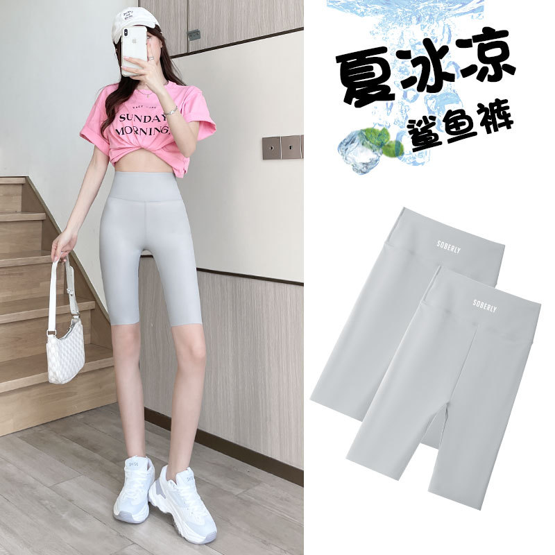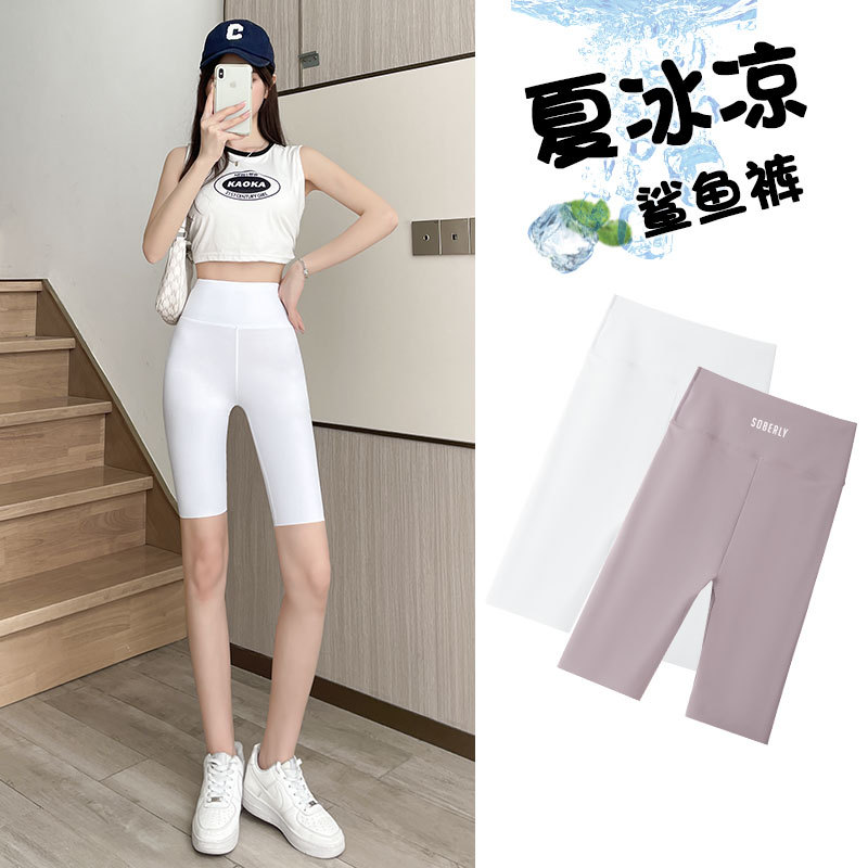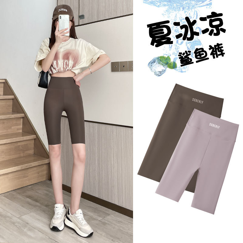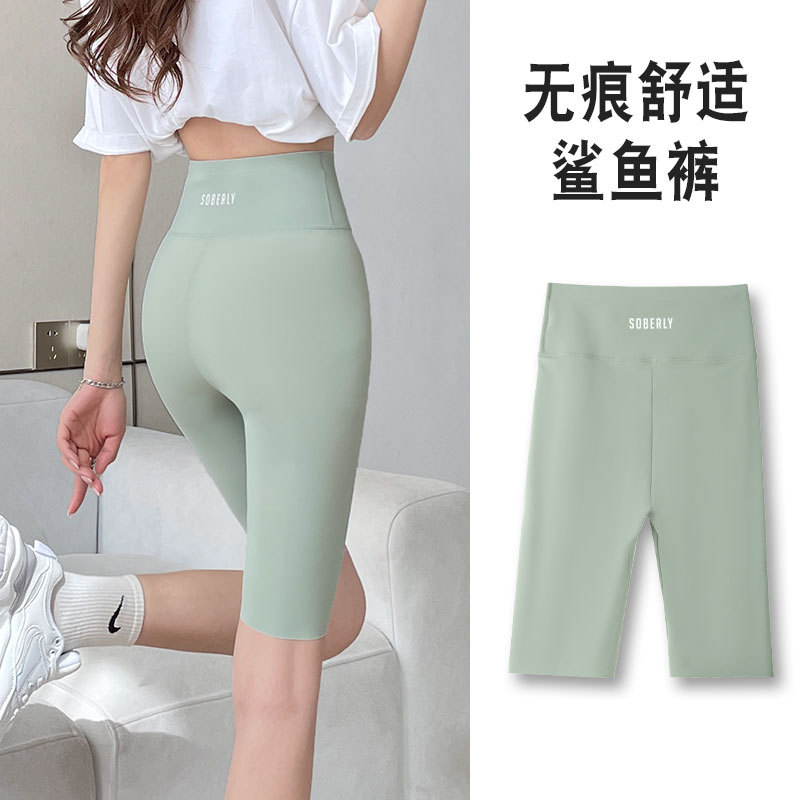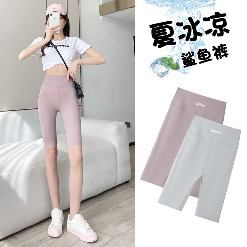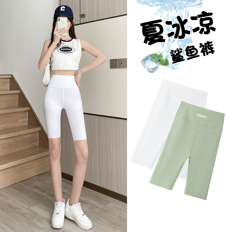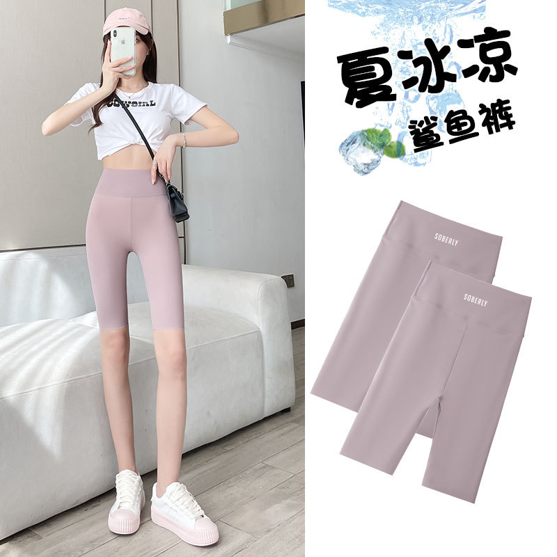 五分瑜伽裤夏季薄款2025新款外穿女健身短款小个子冰丝提臀鲨鱼裤