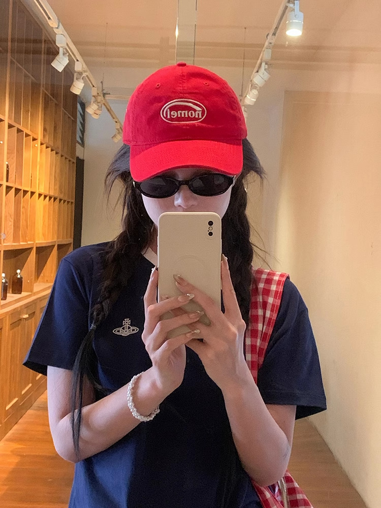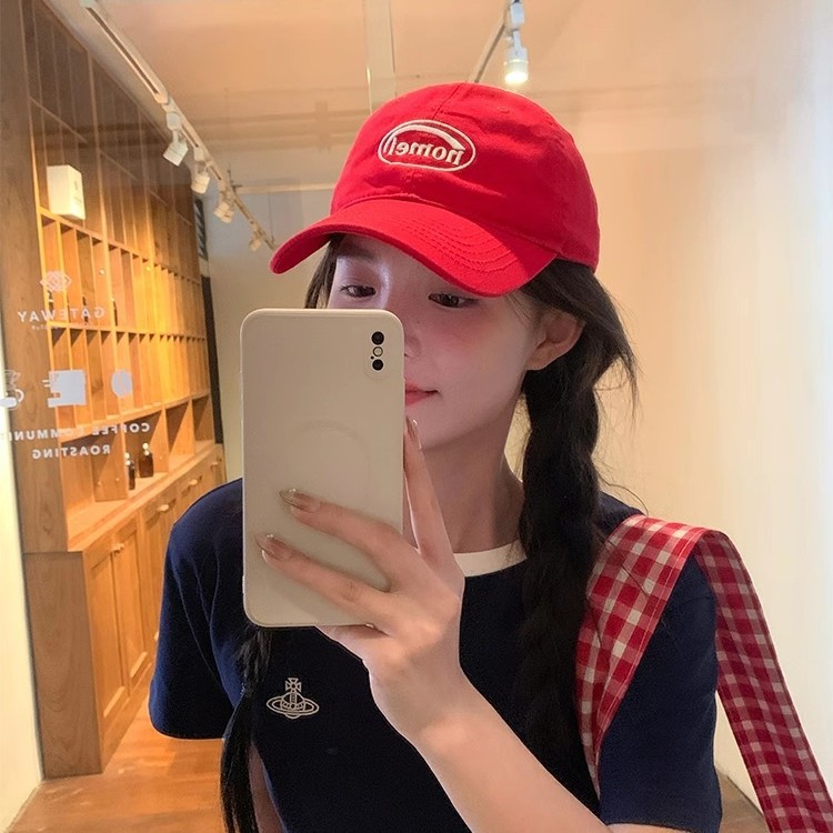 2025年春夏新款韩国ins红色棒球帽子女夏季大头围显脸小鸭舌帽潮