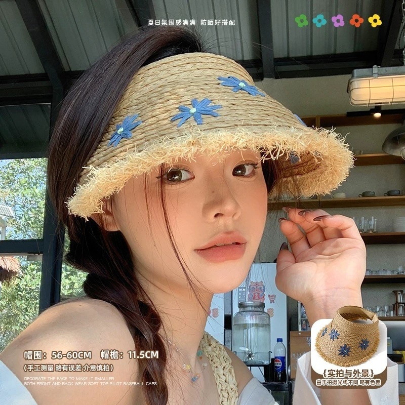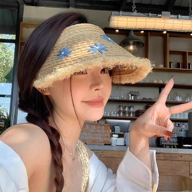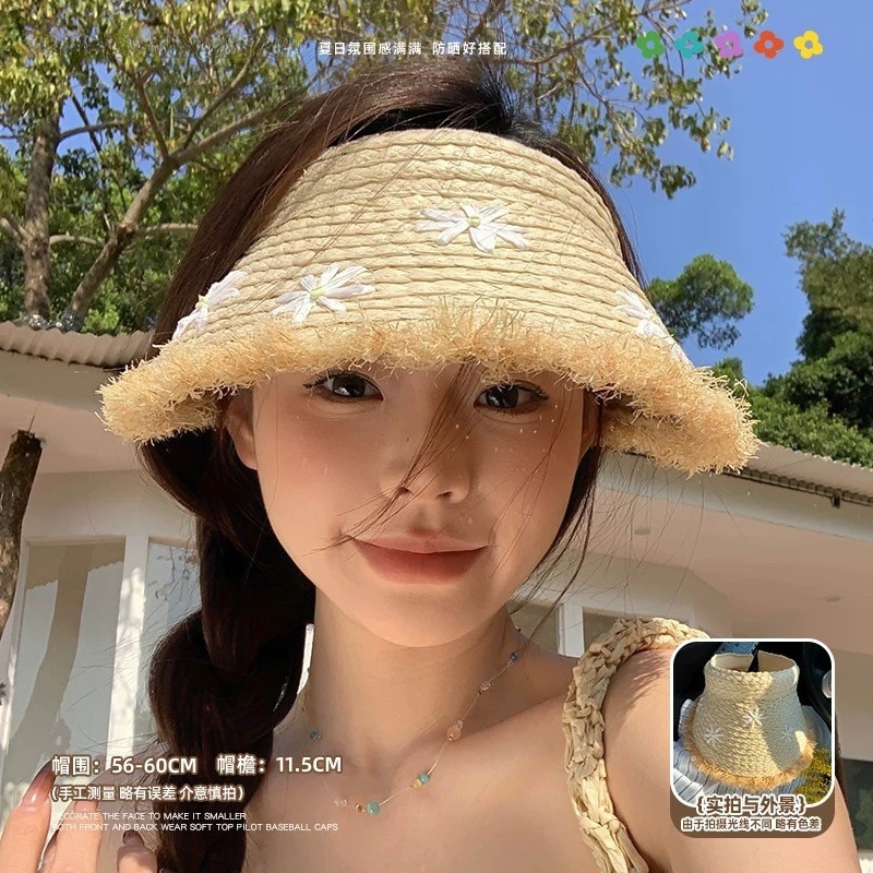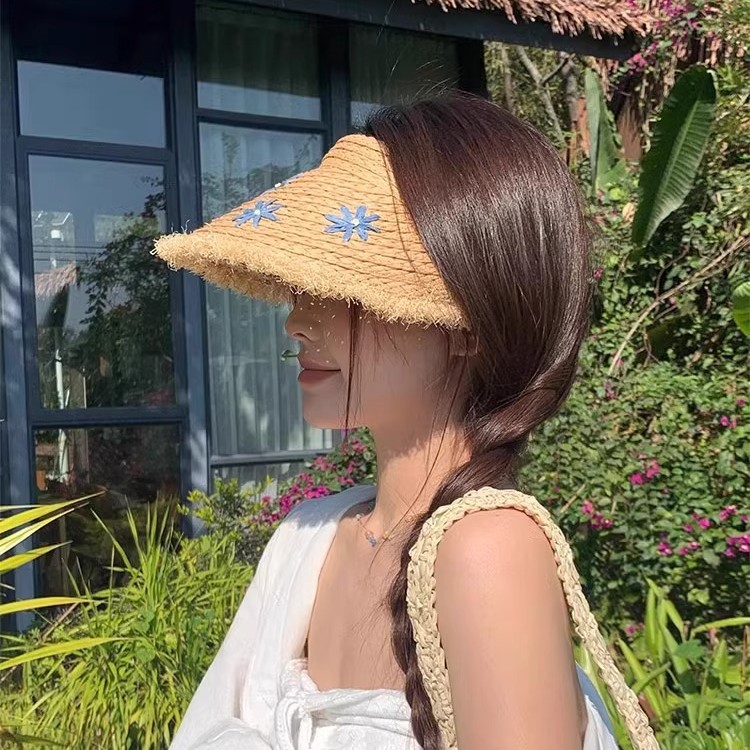 空顶草帽女2025新款沙滩度假海边帽子防晒凉帽夏季大帽檐遮太阳帽