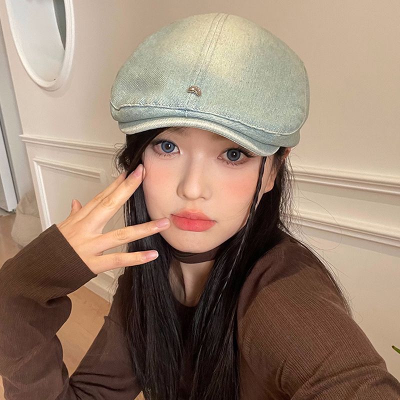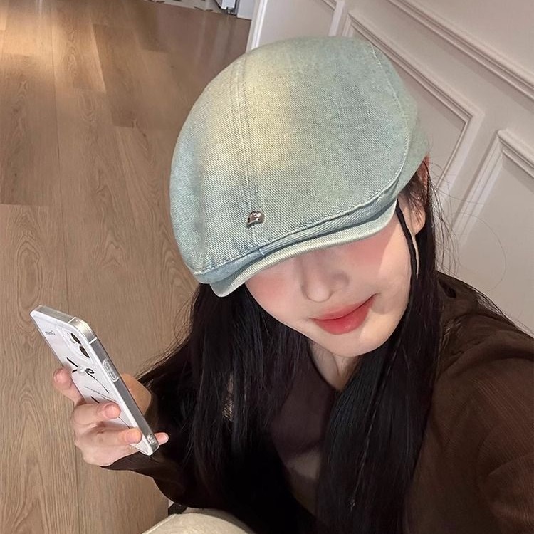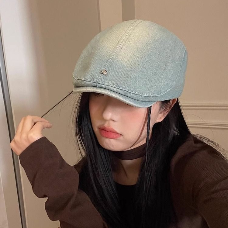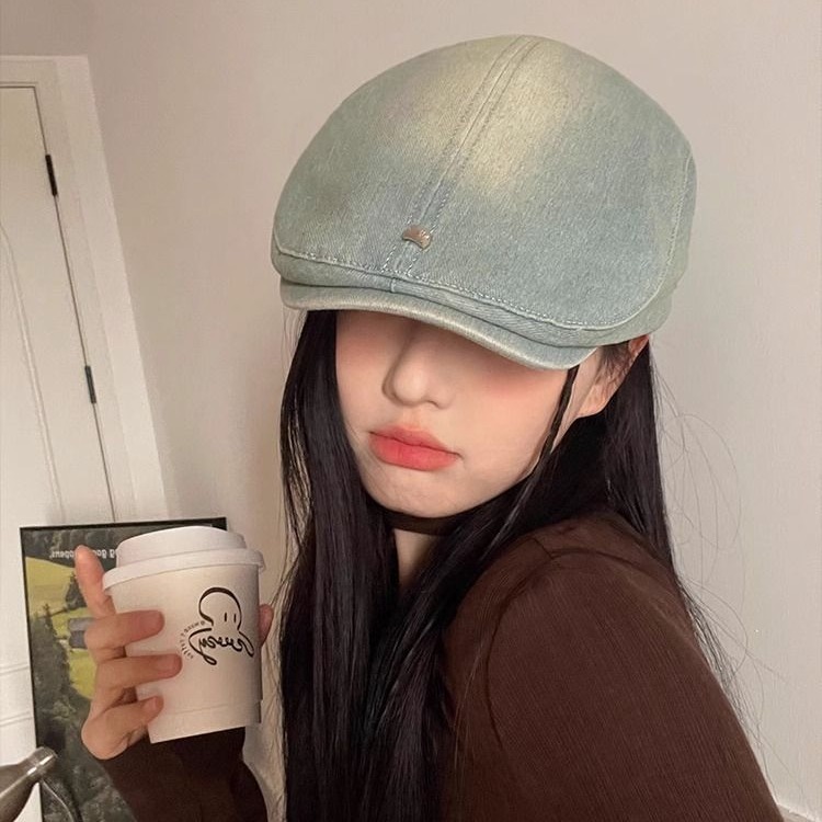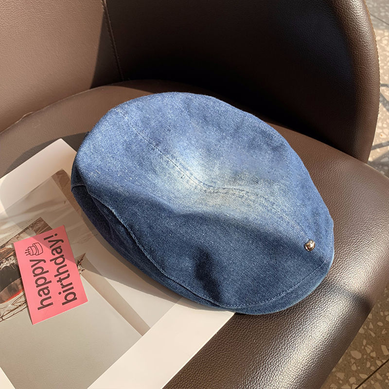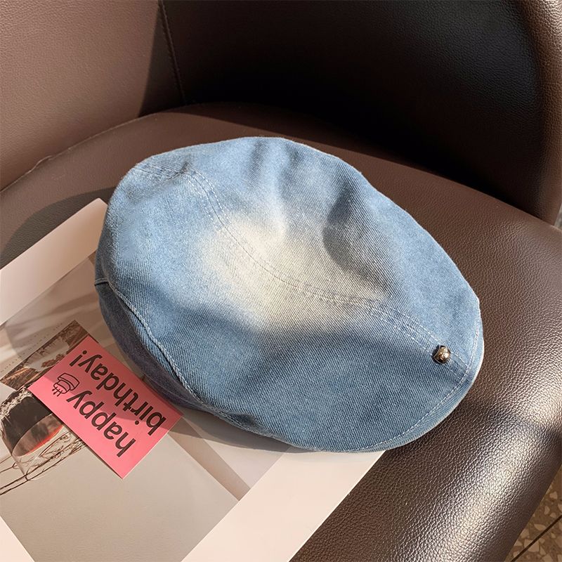 水洗牛仔前进帽女春夏季新款美式复古报童帽贝雷帽鸭舌帽子潮