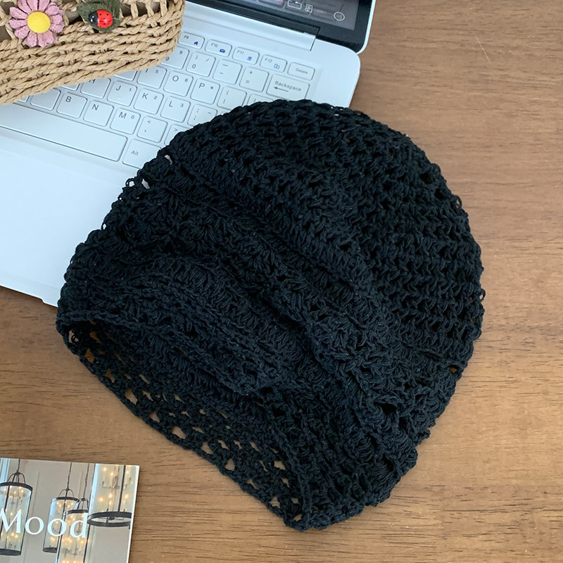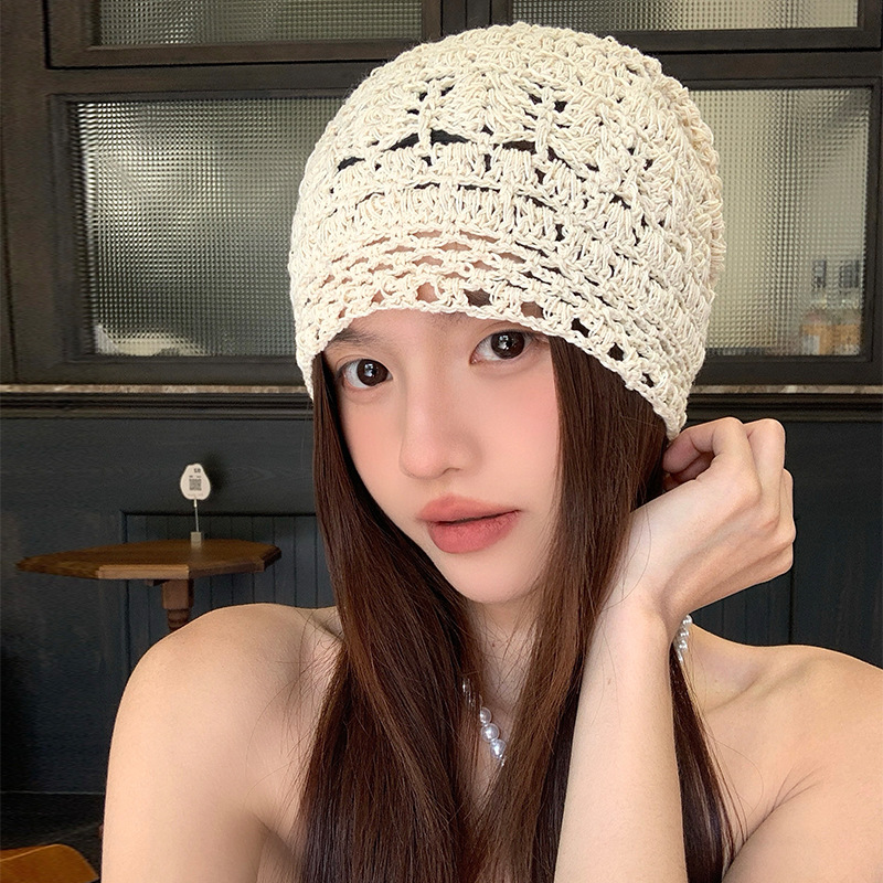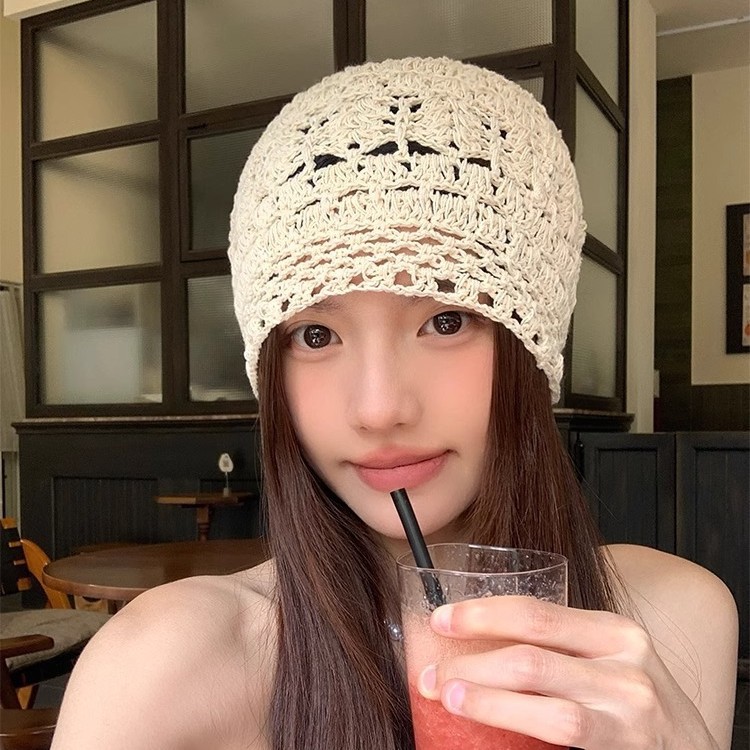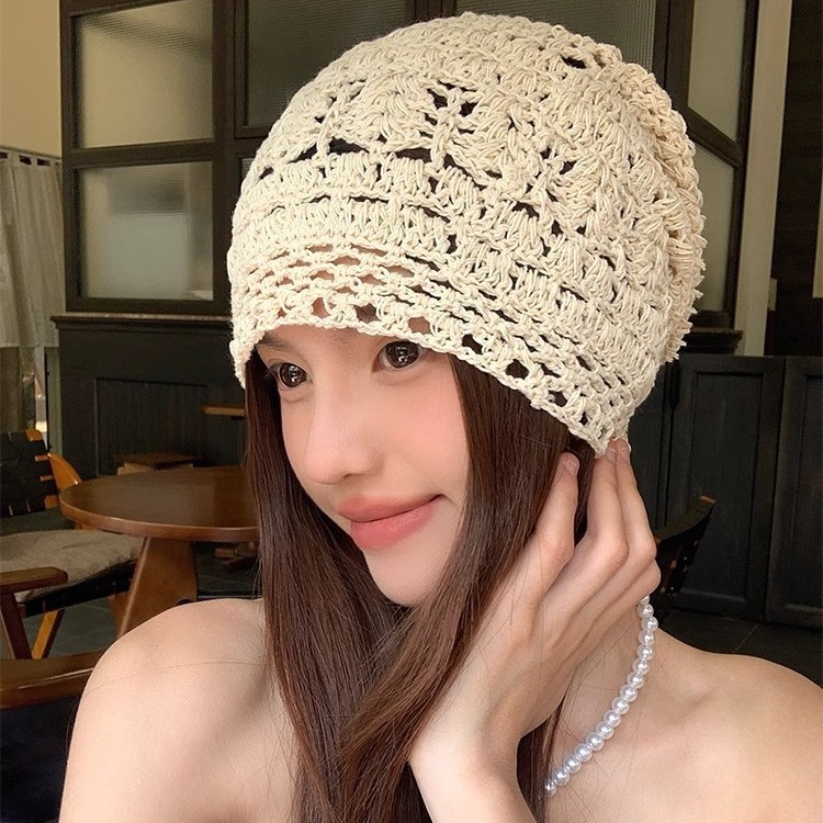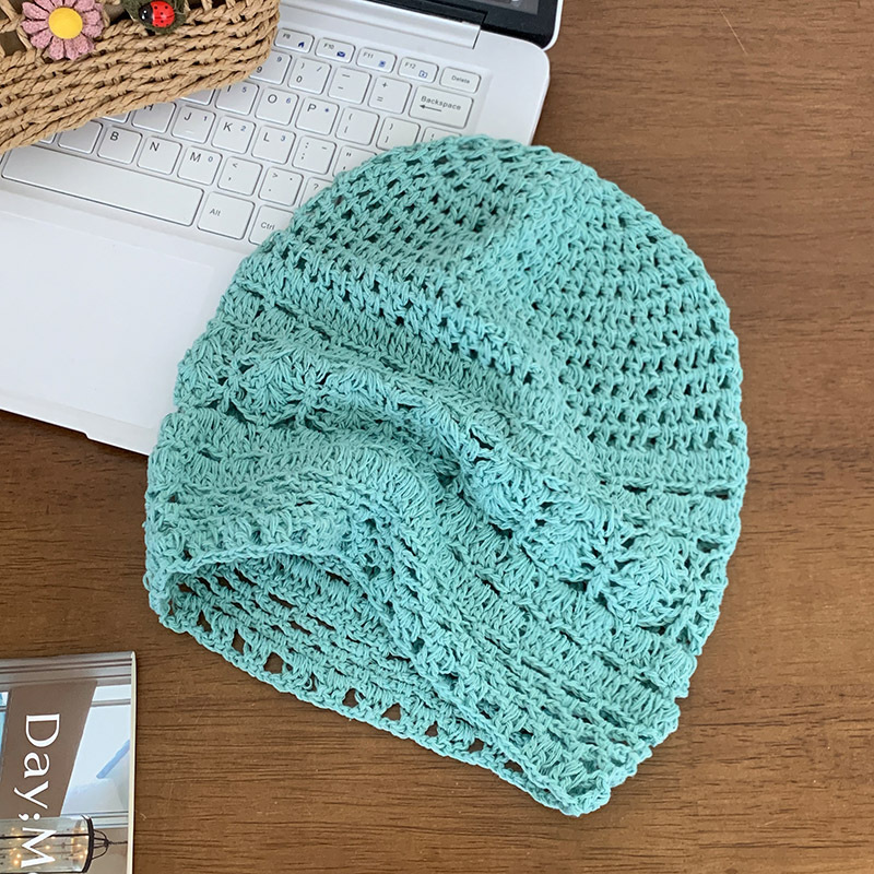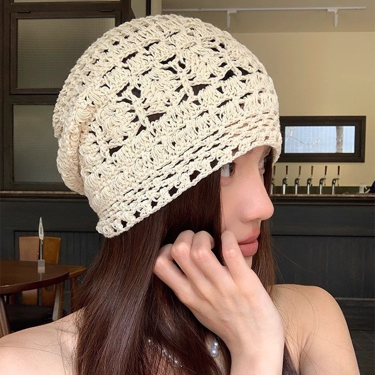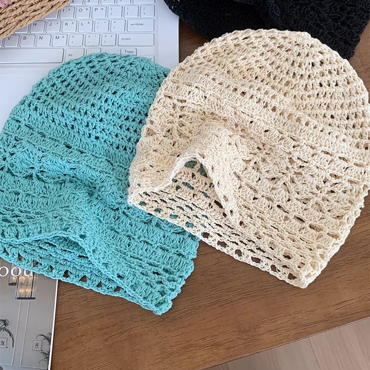 手工钩花镂空编织包头帽女春夏季透气复古文艺风百搭针织套头帽子