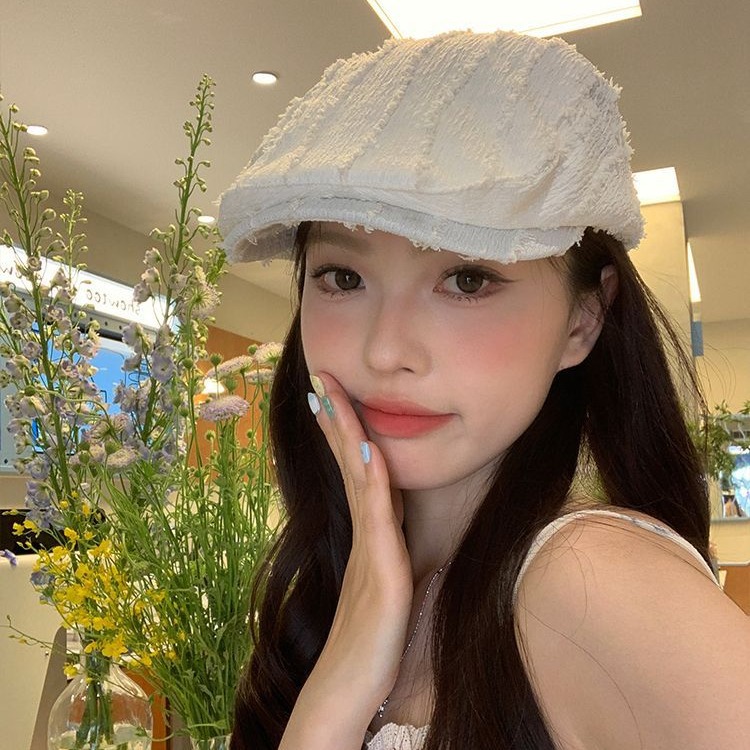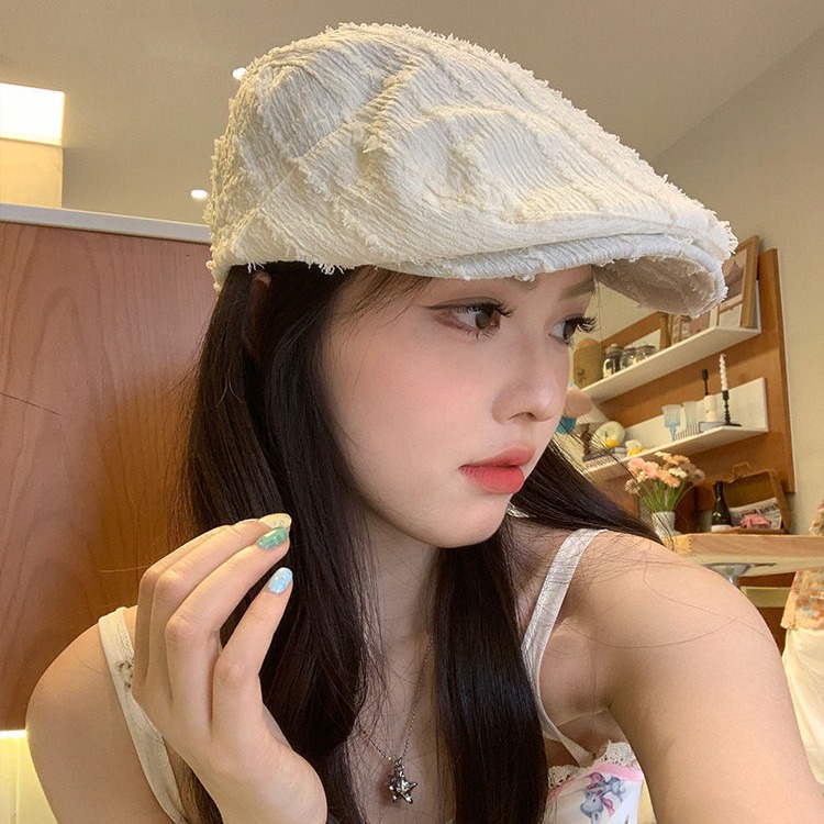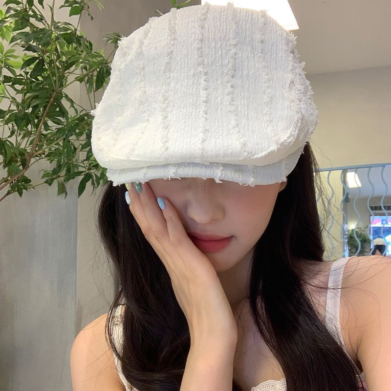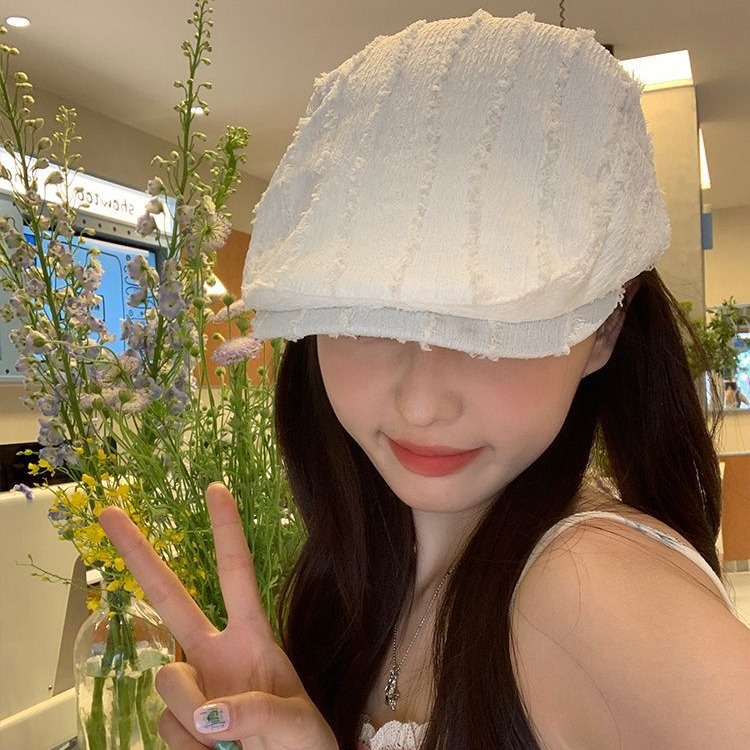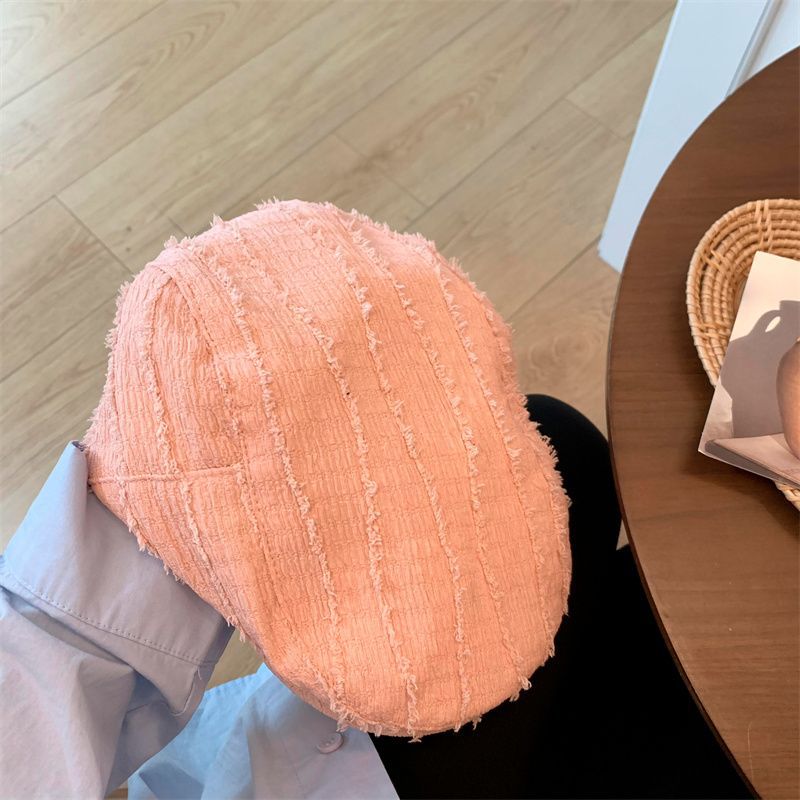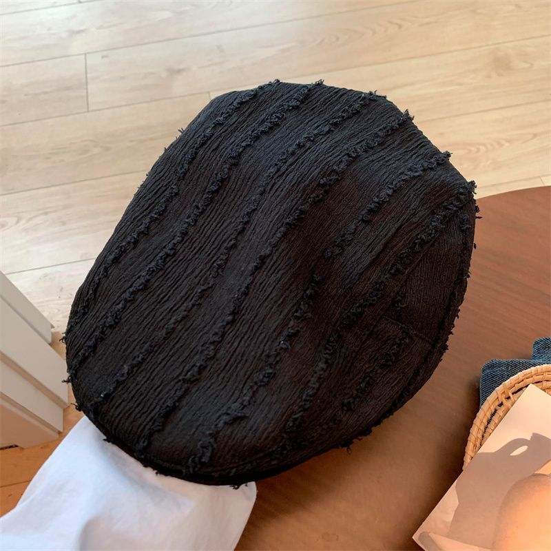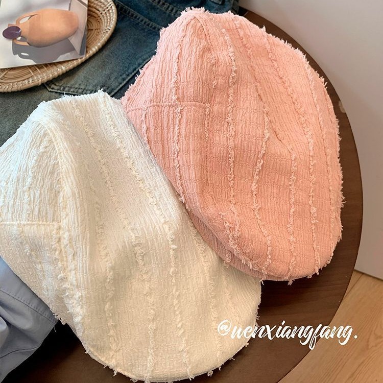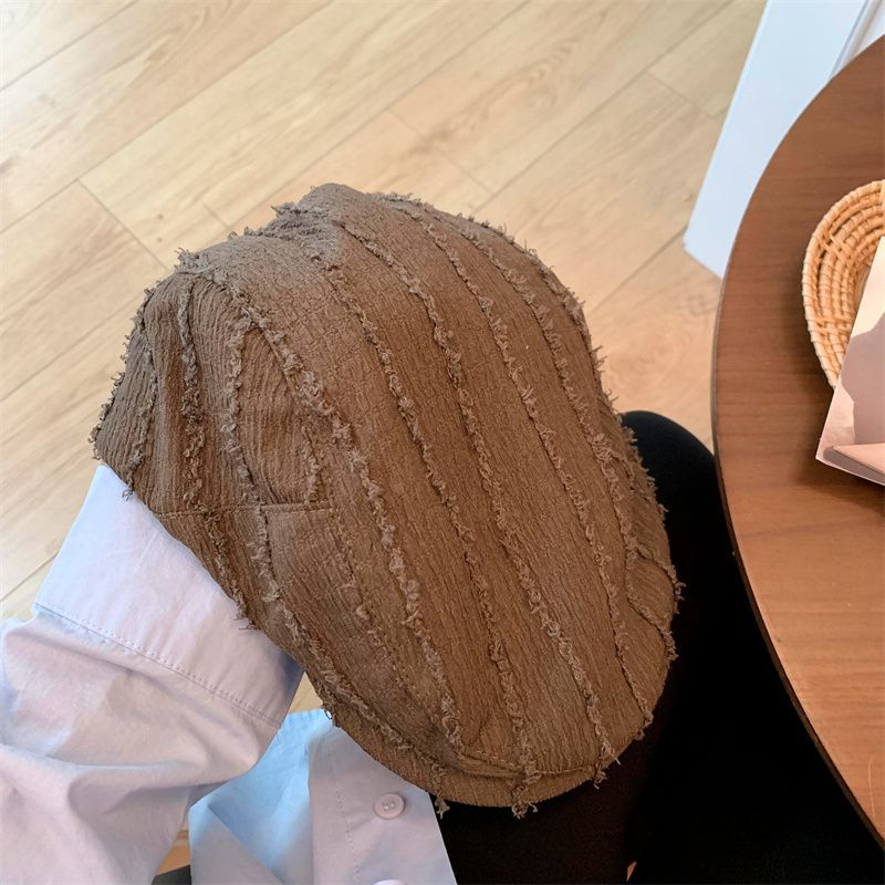 日系复古纯色条纹前进帽女春夏薄款百搭显脸小贝雷帽报童画家帽子
