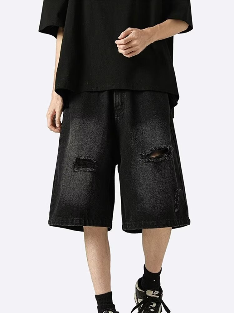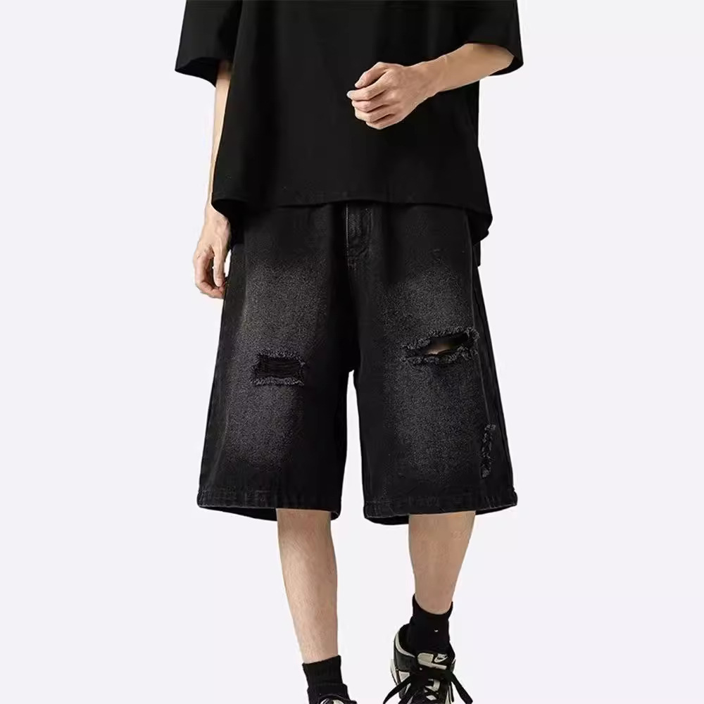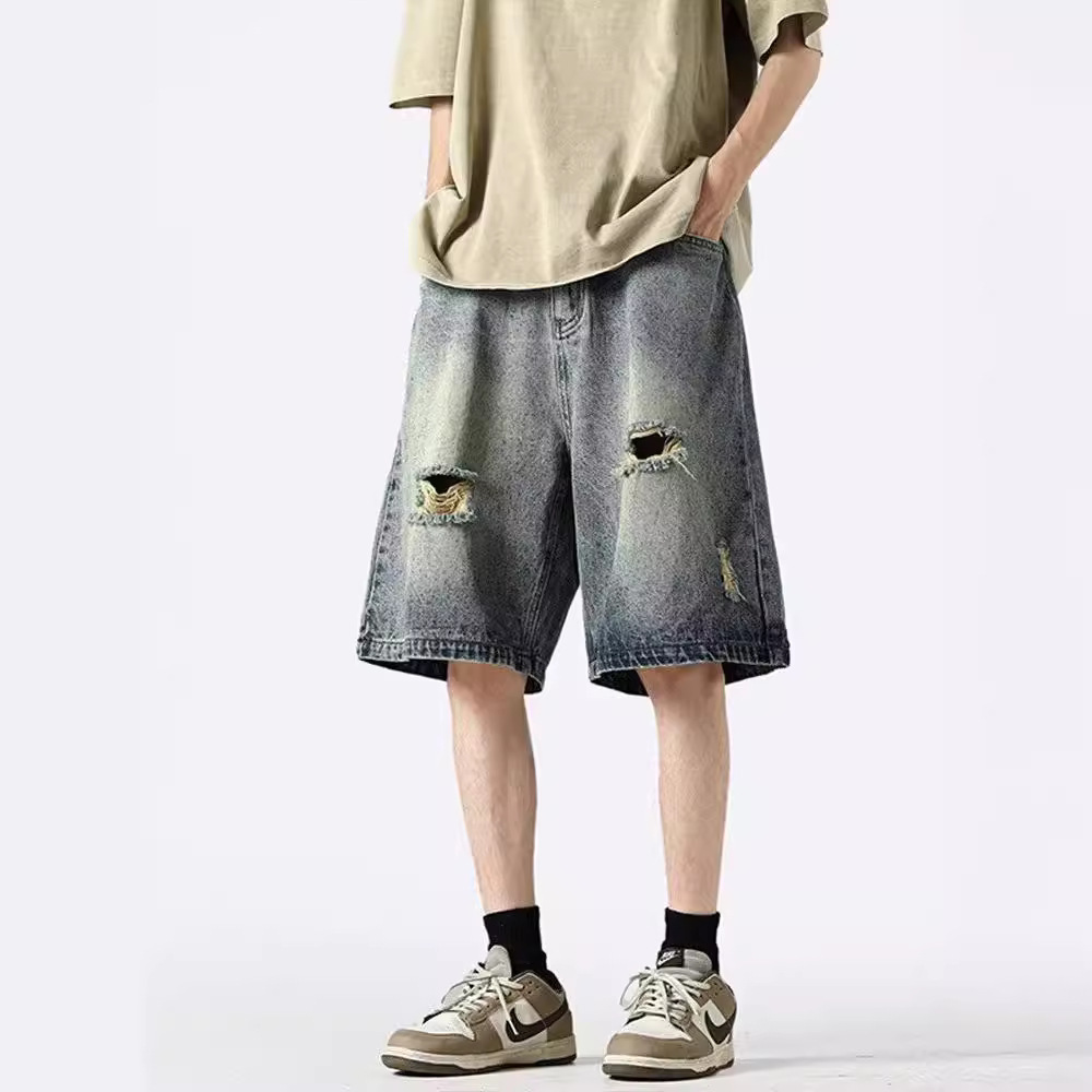 复古水洗牛仔短裤潮牌高街夏季新款青少年休闲五分裤男生学生中裤