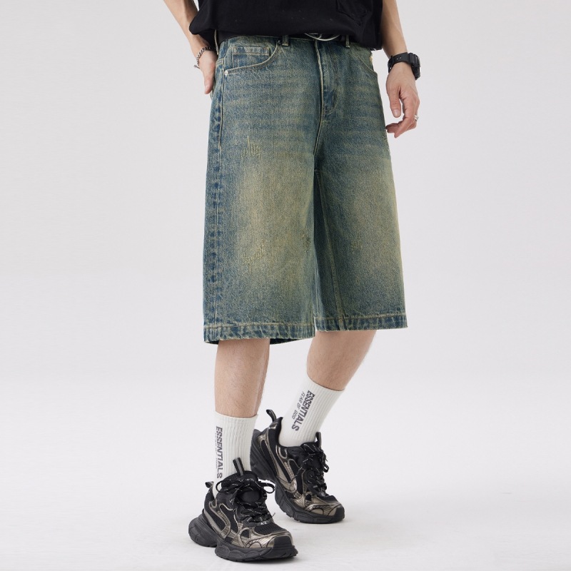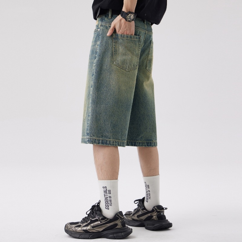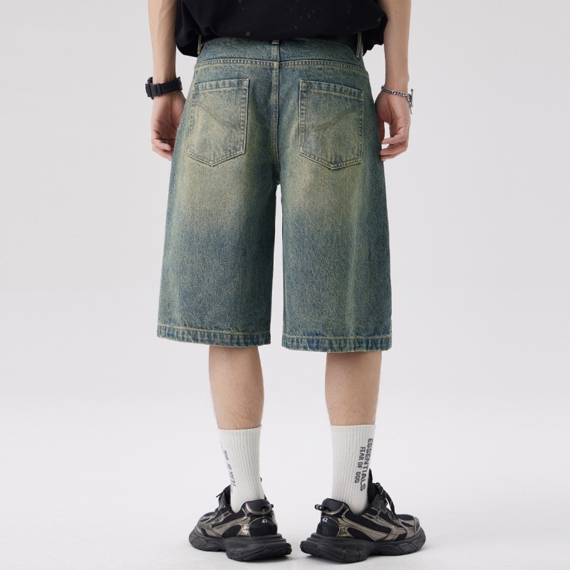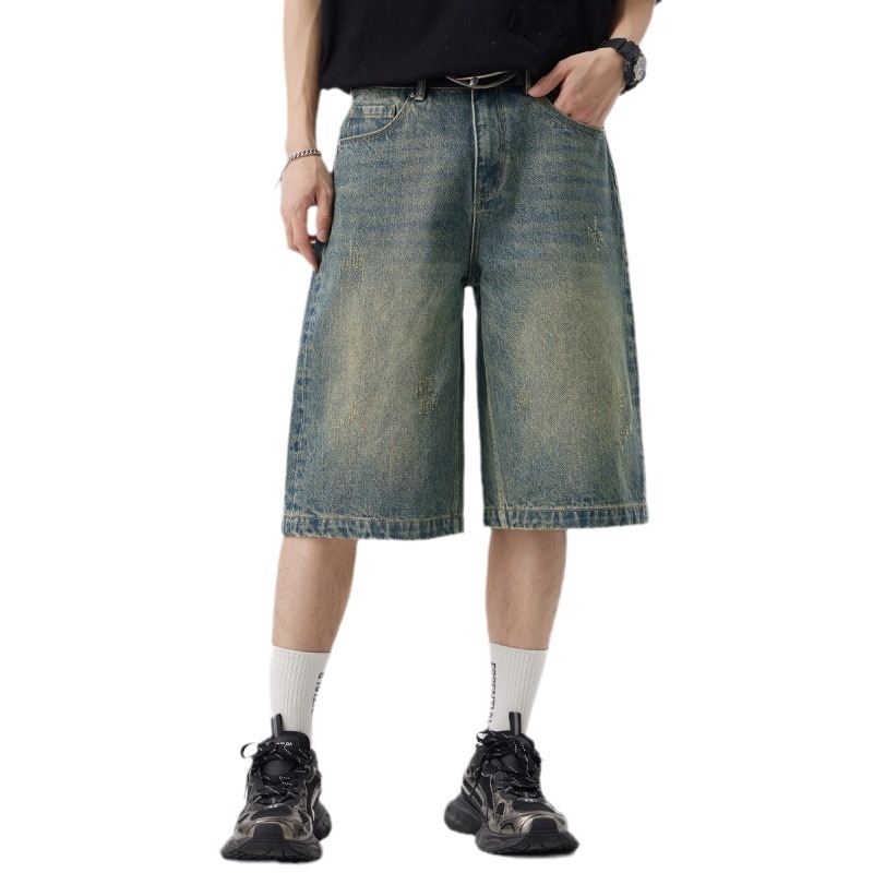 潮牌男装美式复古水洗牛仔短裤男款夏季男生裤子阔腿五分裤休闲裤