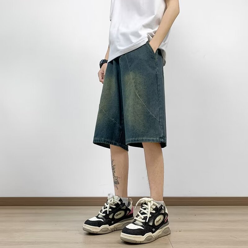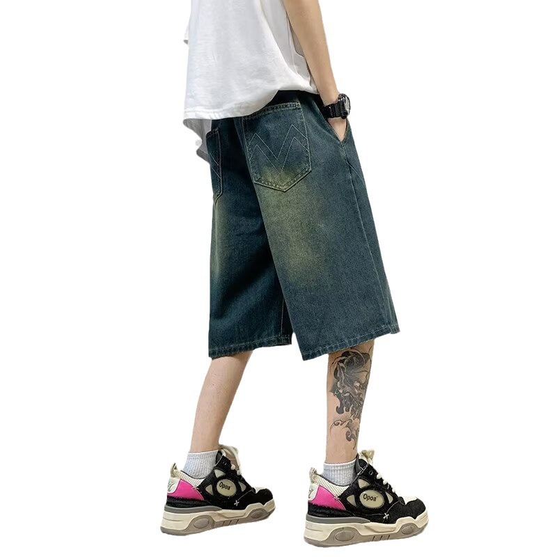 水洗工装牛仔短裤男夏季薄款中裤美式街头百搭宽松直筒运动五分裤
