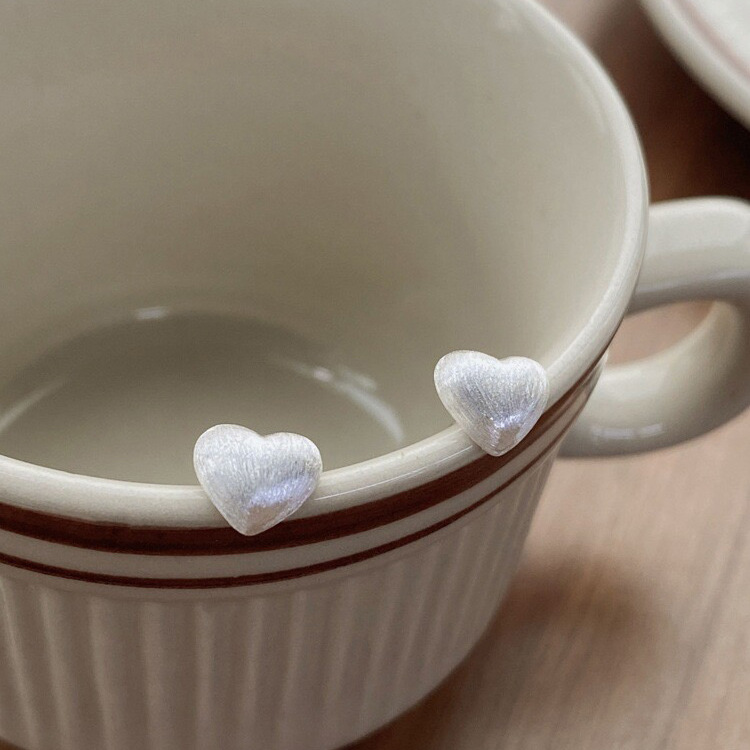 s999足银拉丝爱心耳钉女简约百搭小巧可爱小众设计感气质耳饰