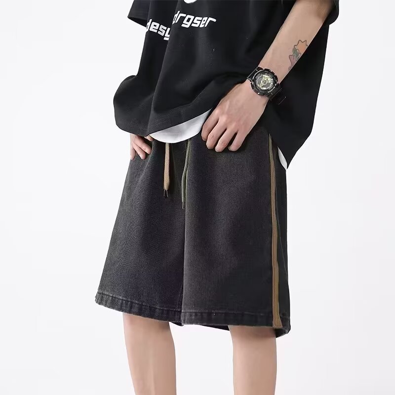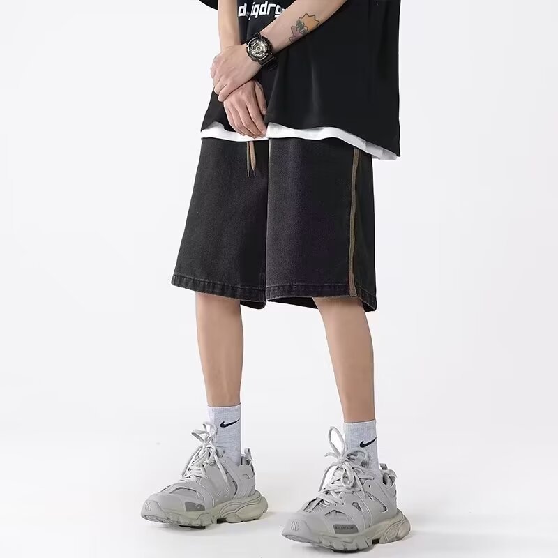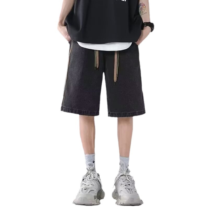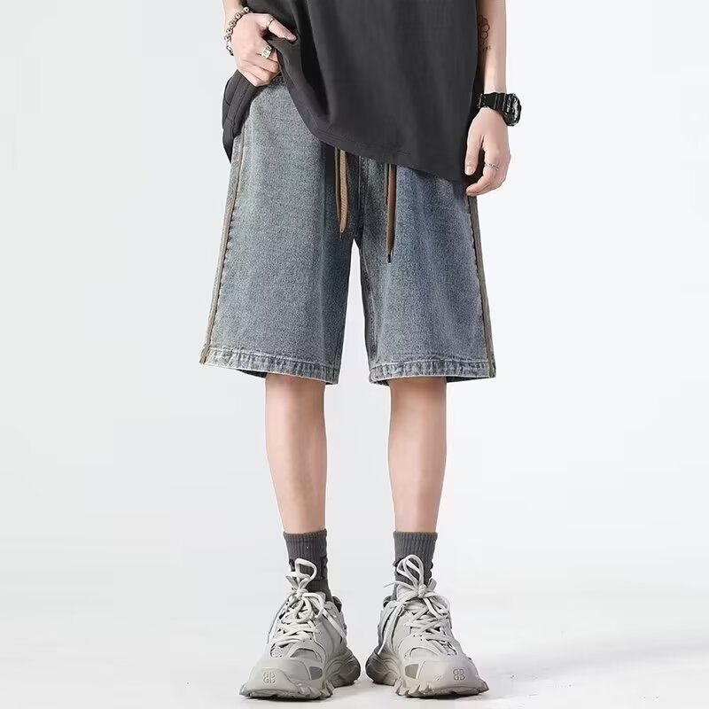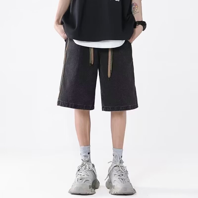 夏季新款美式牛仔短裤男潮牌薄款设计感小众宽松大码休闲五分裤子
