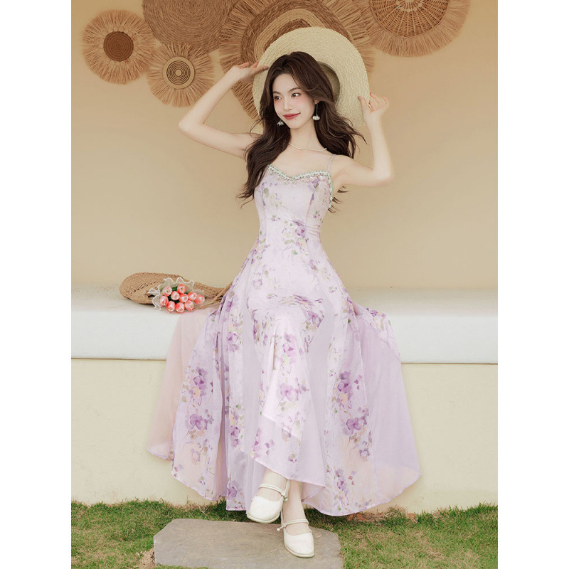 法式绝美温柔风晕染吊带连衣裙防晒开衫两件套纯欲风海边度假穿搭