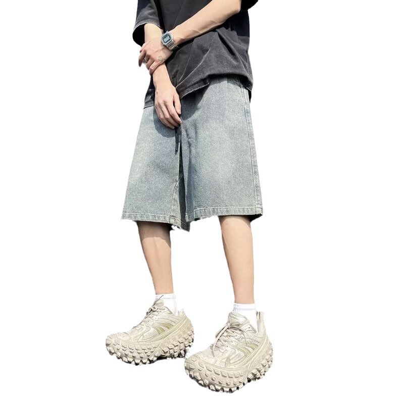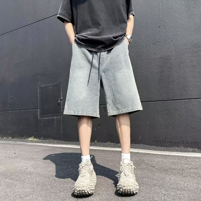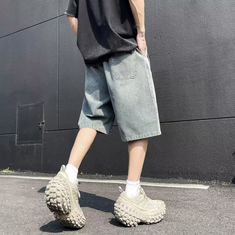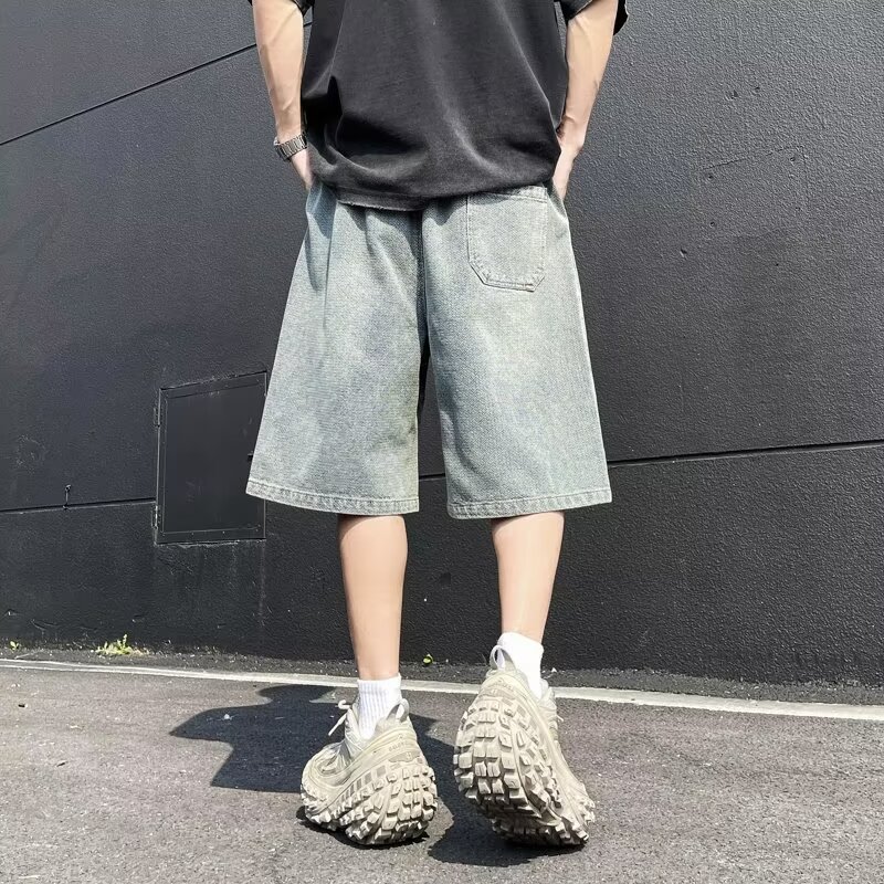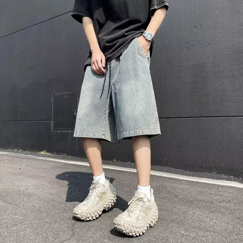 复古水洗牛仔短裤潮牌高街夏季新款青少年休闲五分裤男生学生中裤