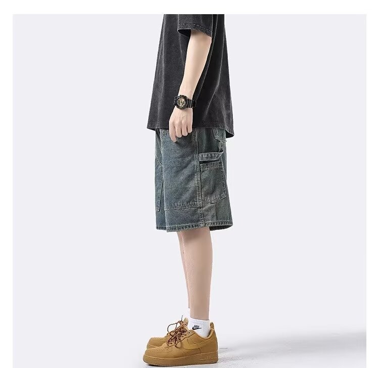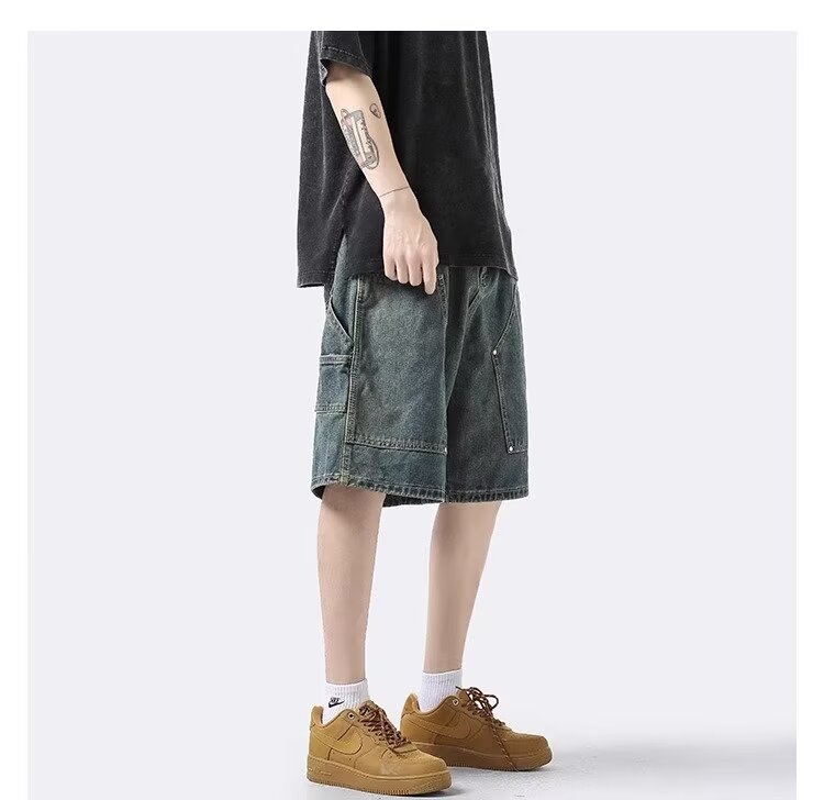 工装牛仔短裤男夏季薄款潮牌宽松直筒五分裤美式水洗休闲裤子