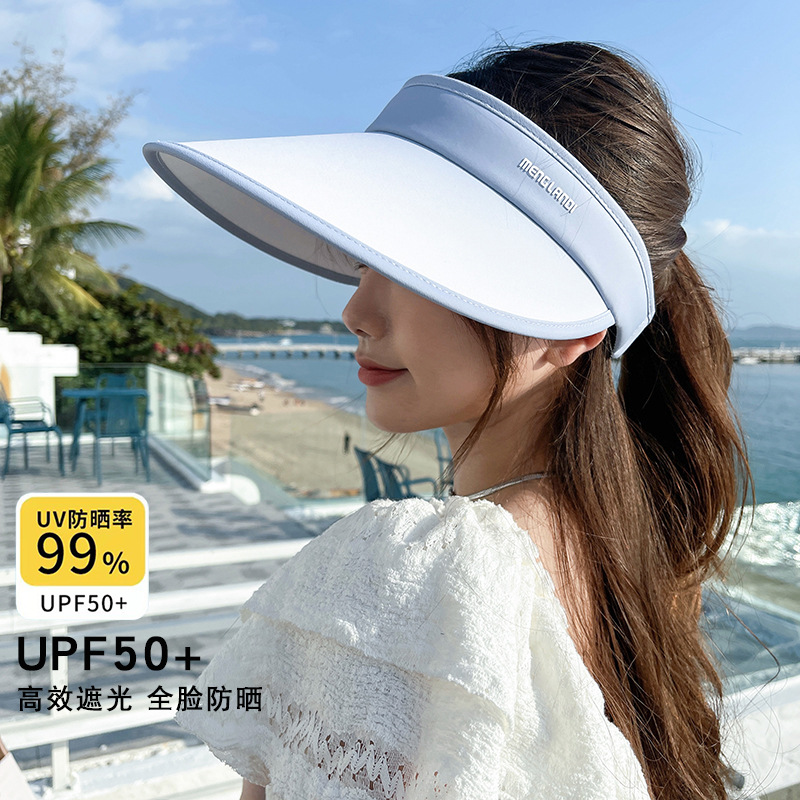 帽子女春夏季空顶遮阳帽户外骑车大檐UV防紫外线遮脸发箍式太阳帽