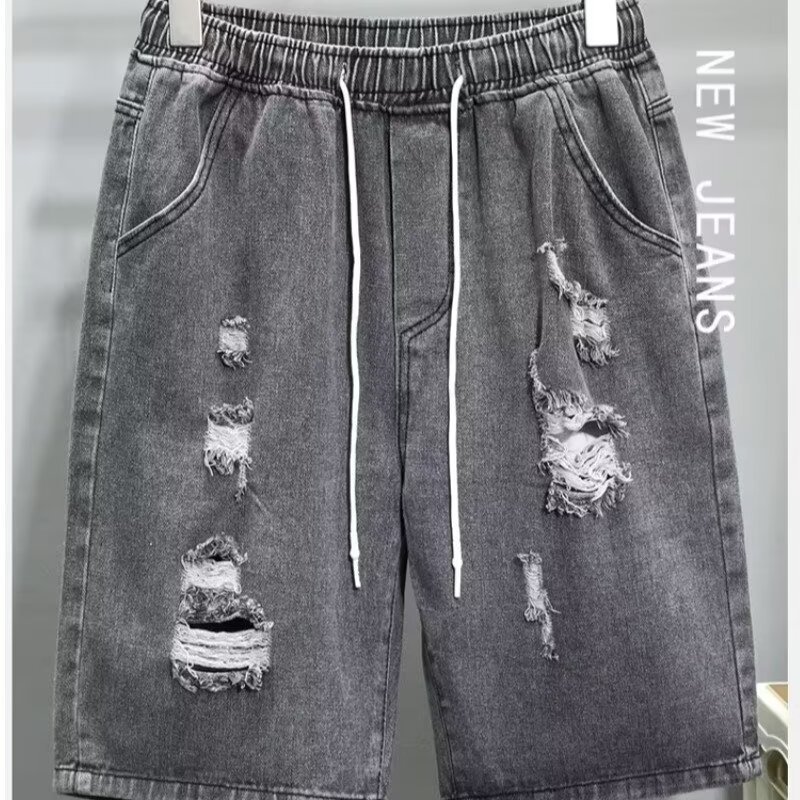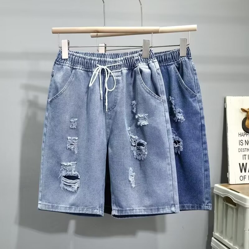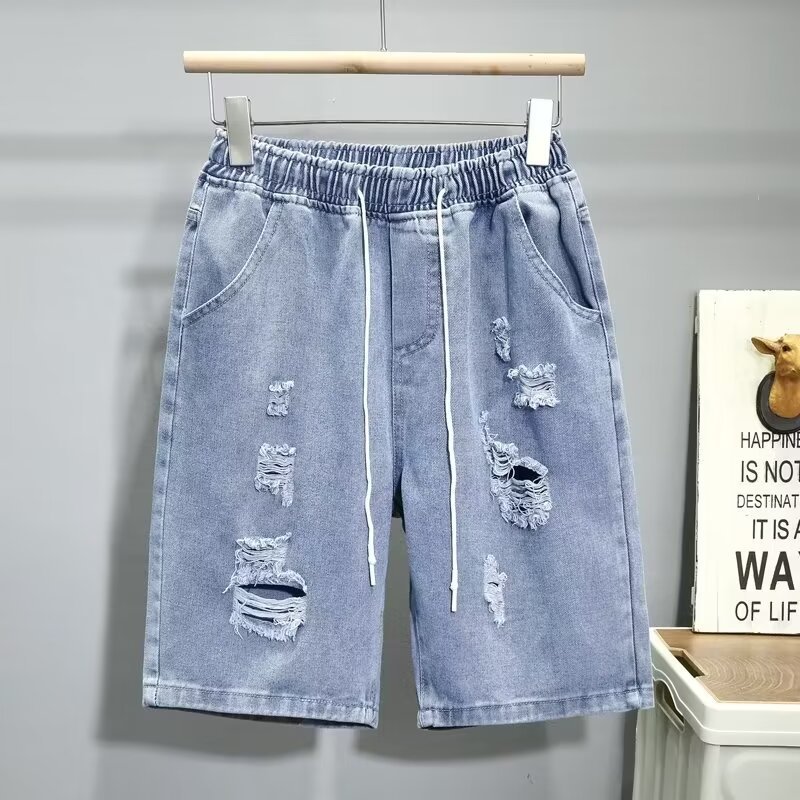 男士牛仔破洞休闲日常宽松百搭潮流夏季复古透气简约时尚五分裤男