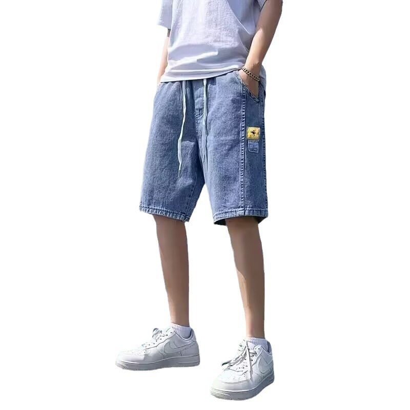 男士牛仔短裤直筒宽松韩版潮流夏天薄款中裤潮牌拼接五分裤