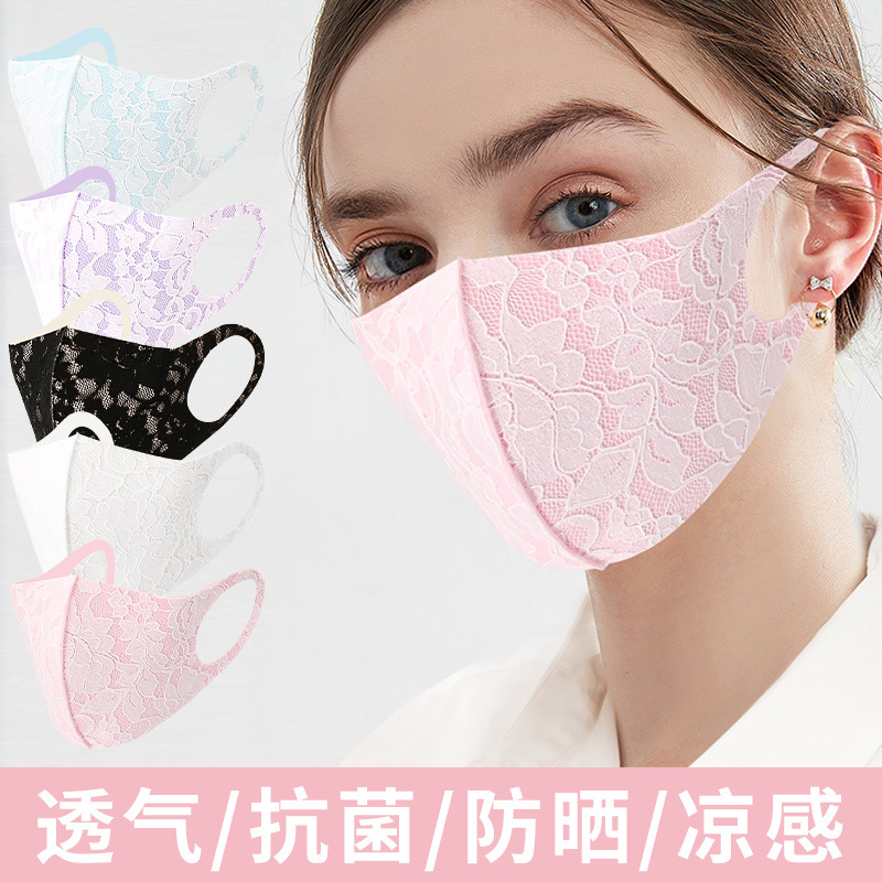 蕾丝口罩可水洗夏季薄款防晒凉感3D立体复合冰丝布口罩