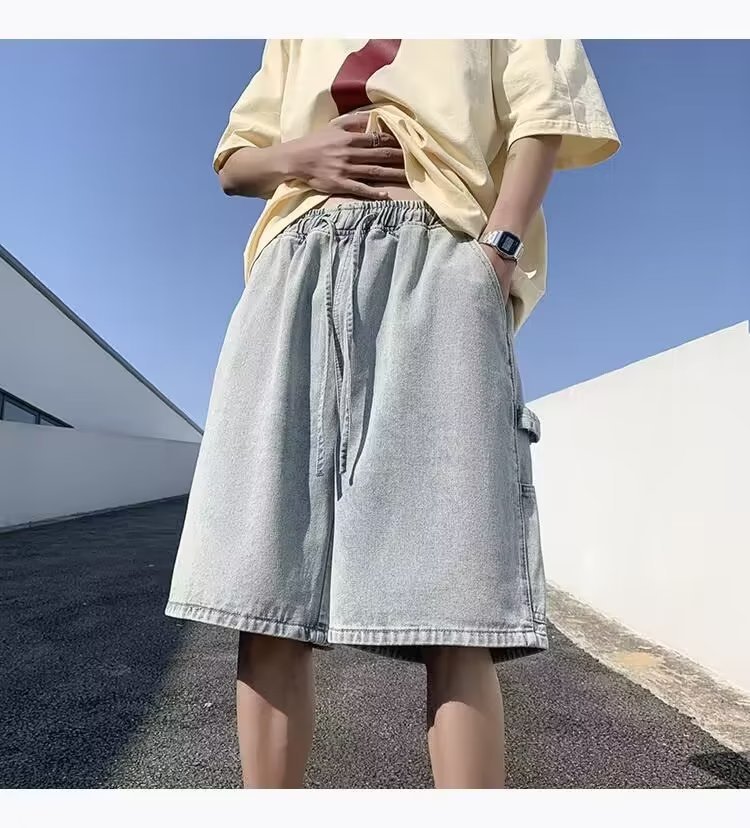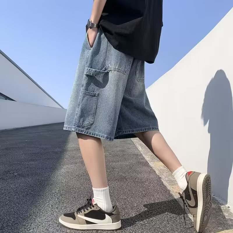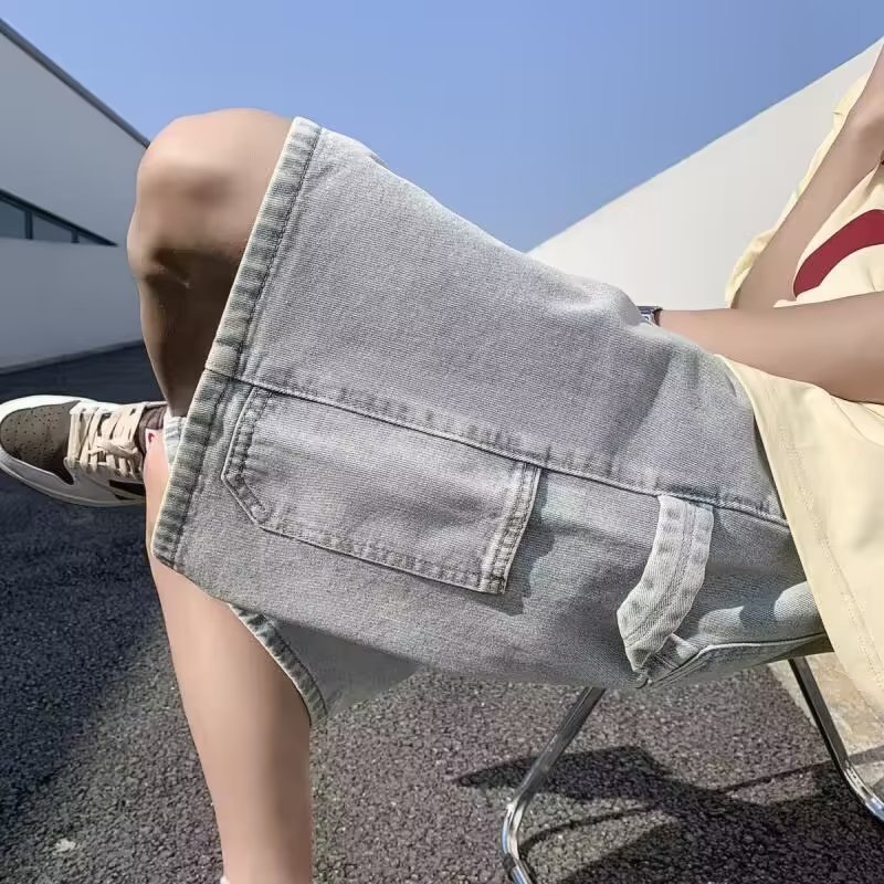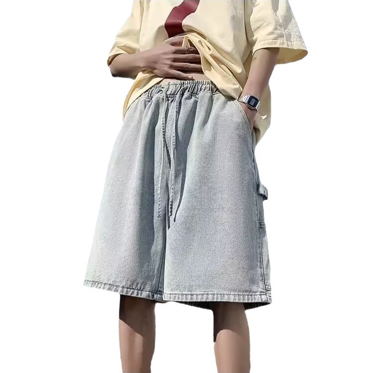 牛仔短裤男夏季高街潮牌新款休闲潮流五分裤宽松大码阔腿裤子