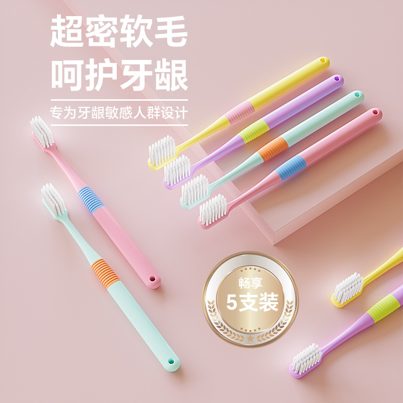 【5支装】热销款糖果色牙刷高品质颜值舒适软毛强清洁力