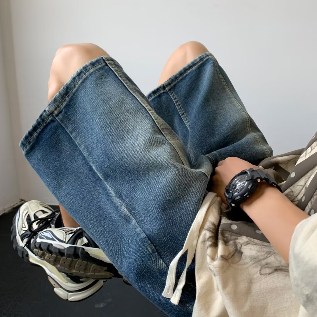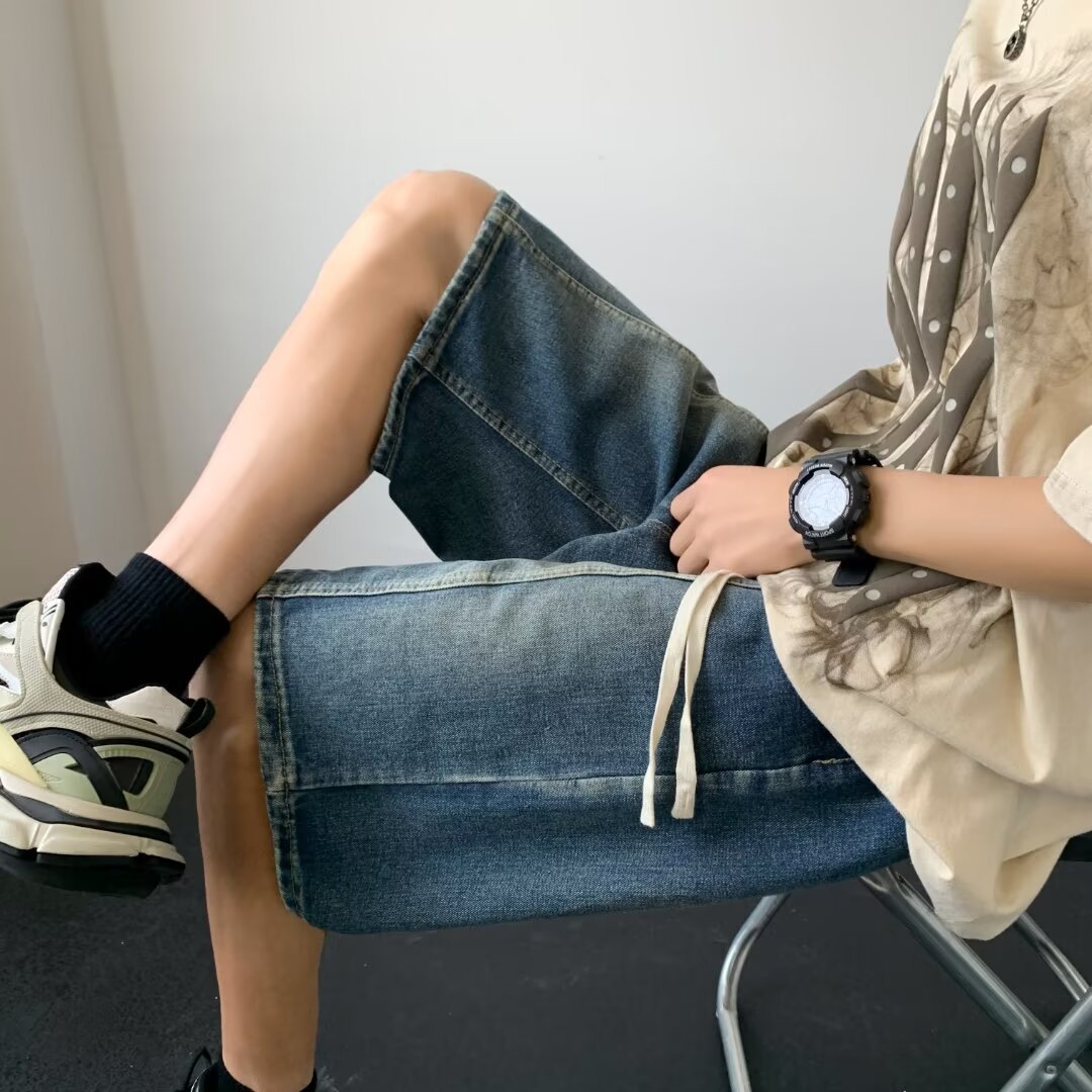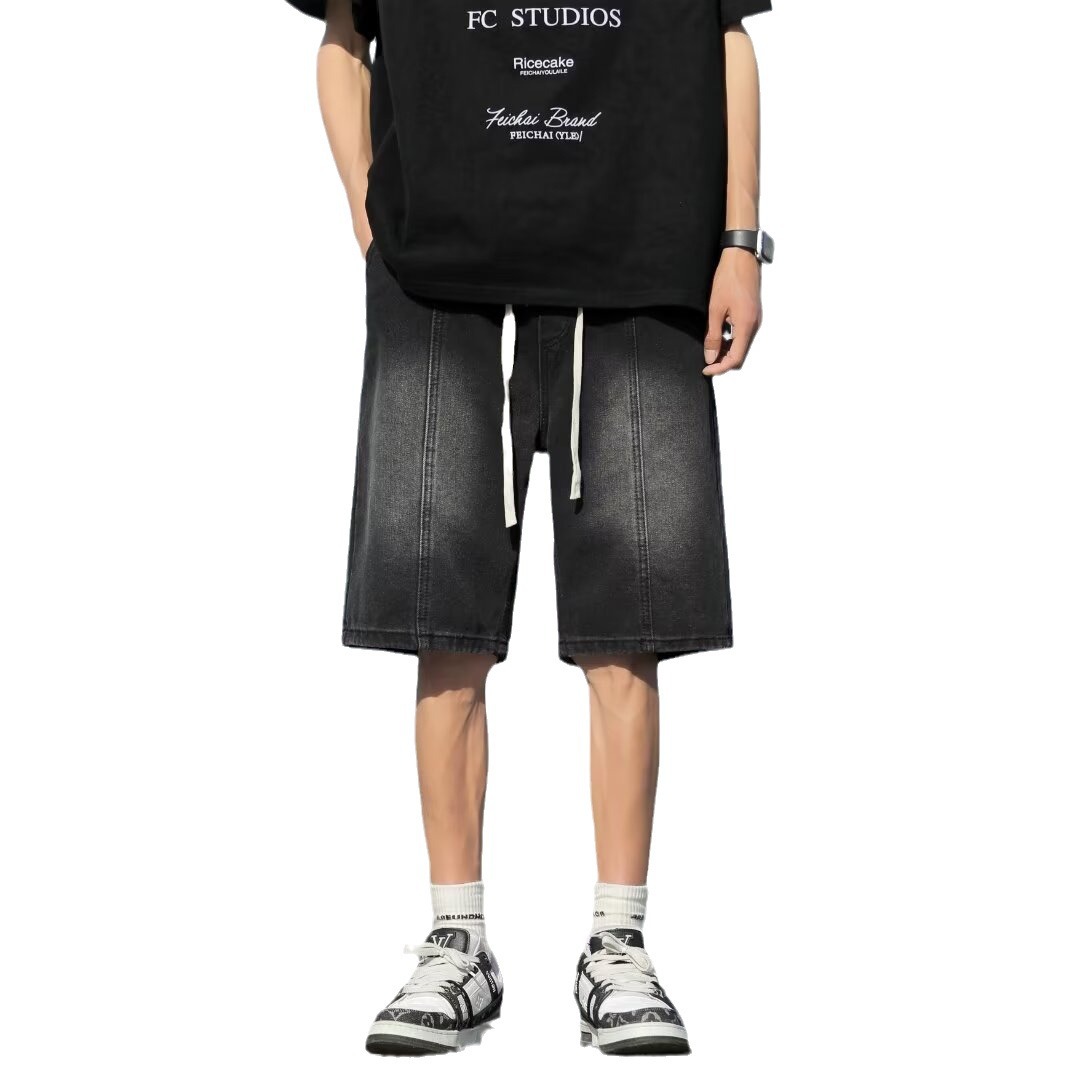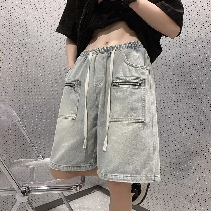 工装短裤男夏季新款日系薄款运动牛仔裤男装大口袋宽松五分裤子男