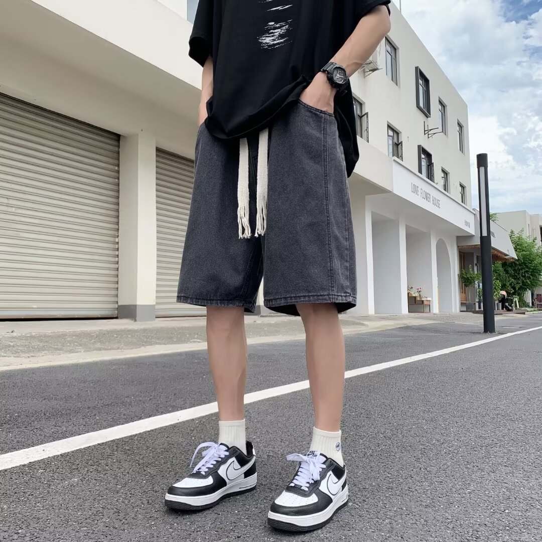 复古水洗牛仔短裤潮牌高街夏季新款青少年休闲五分裤男生学生中裤