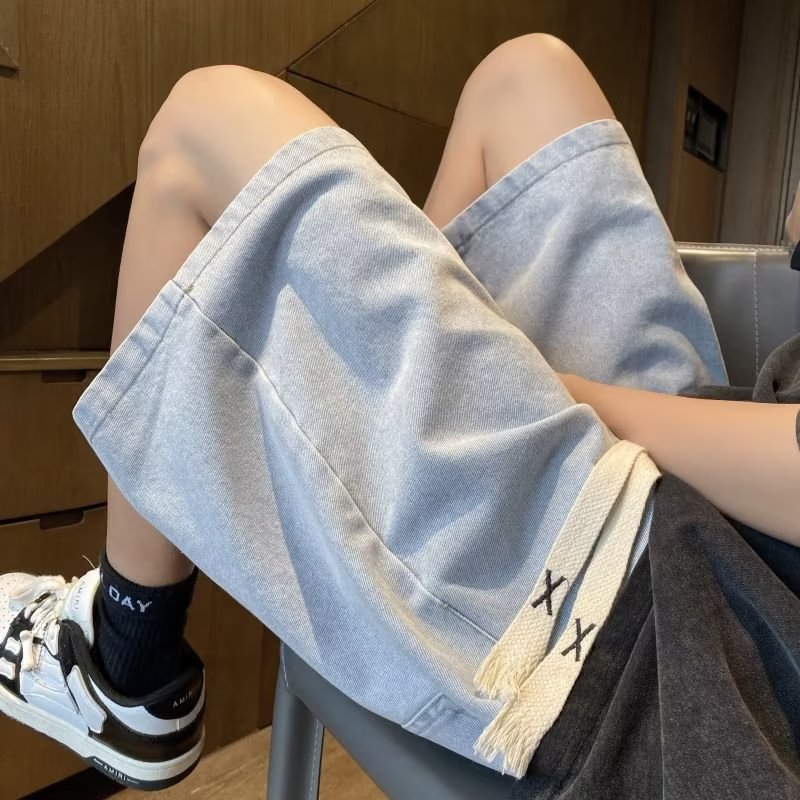 美式高街牛仔短裤男夏季薄款宽松潮牌百搭抽绳裤子男外穿五分裤潮