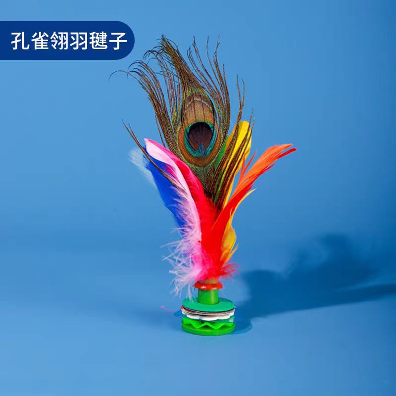毽子鸡毛孔雀翎大眼毽大尾软毛手工毽芦花鸡七彩毛成人健身儿童