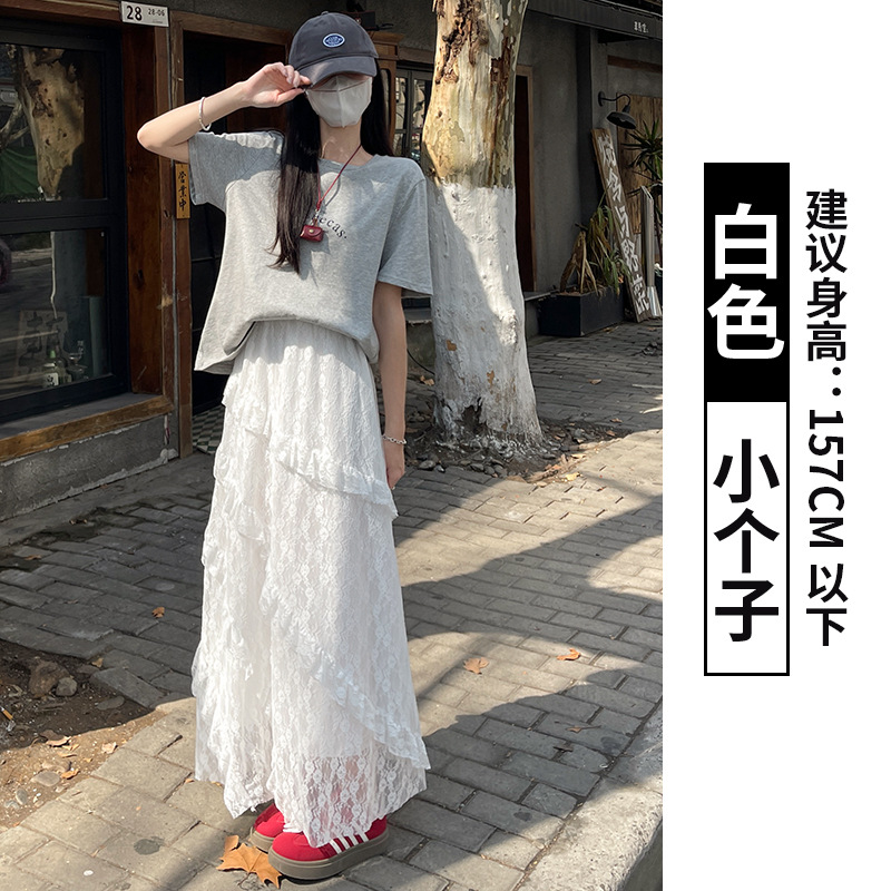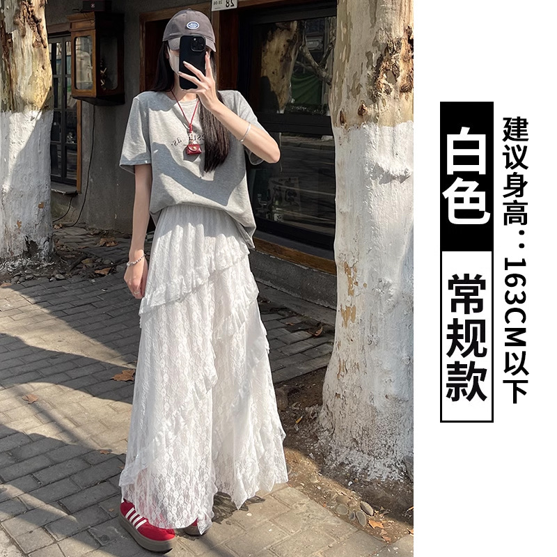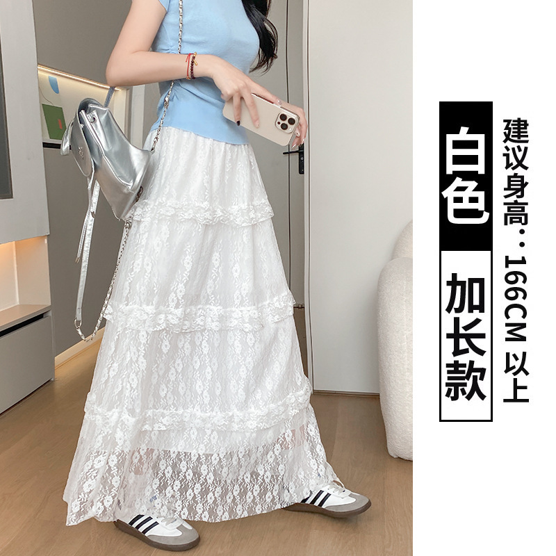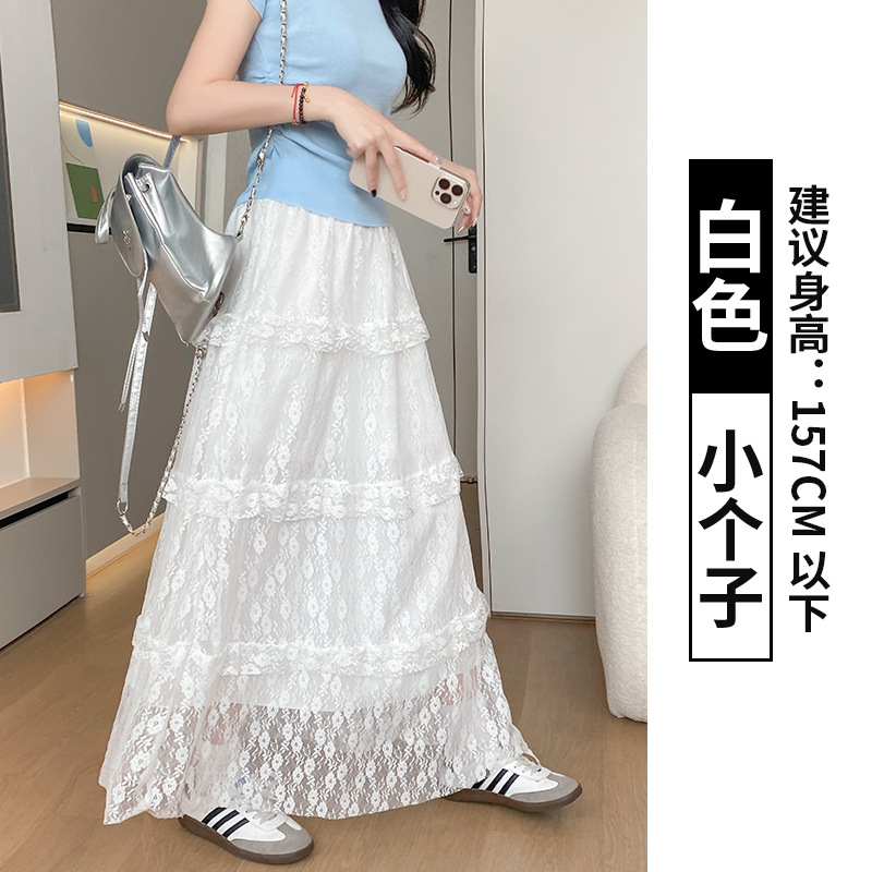 白色蕾丝半身裙女夏季2025新款高腰a字网纱长裙小个子夏天蛋糕裙