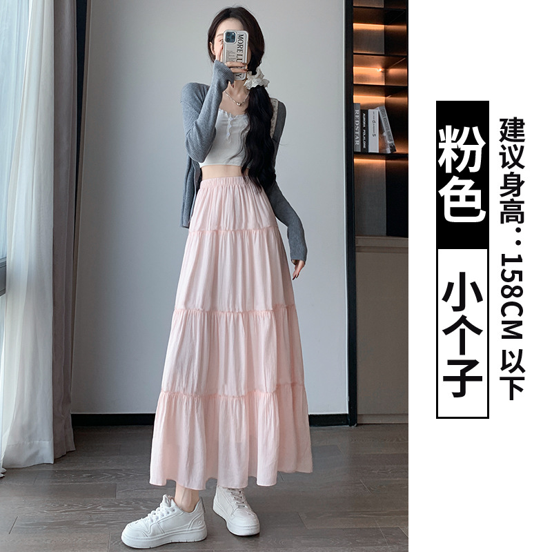 白色半身裙女春夏2025新款高腰a字显瘦百褶长裙伞裙小个子蛋糕裙