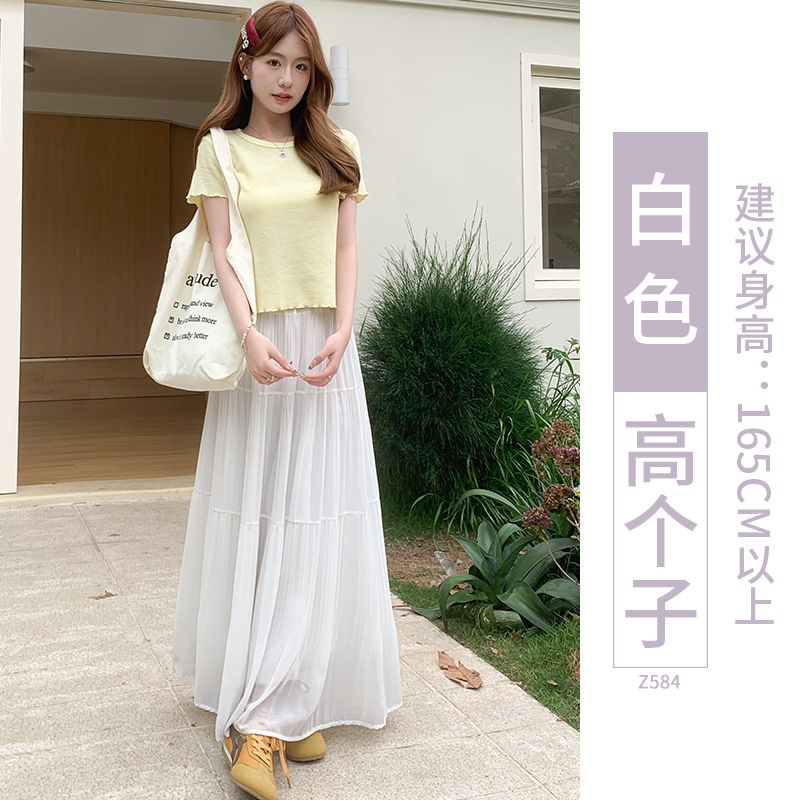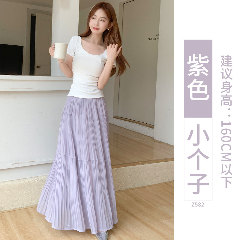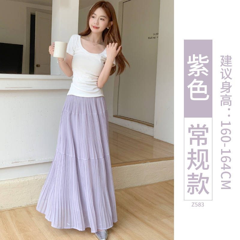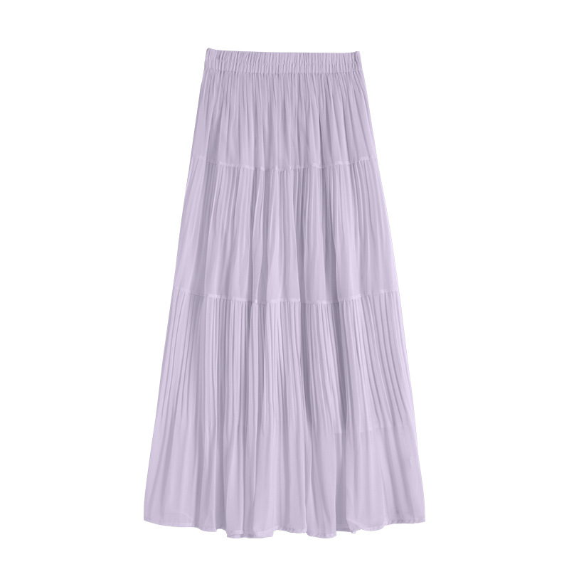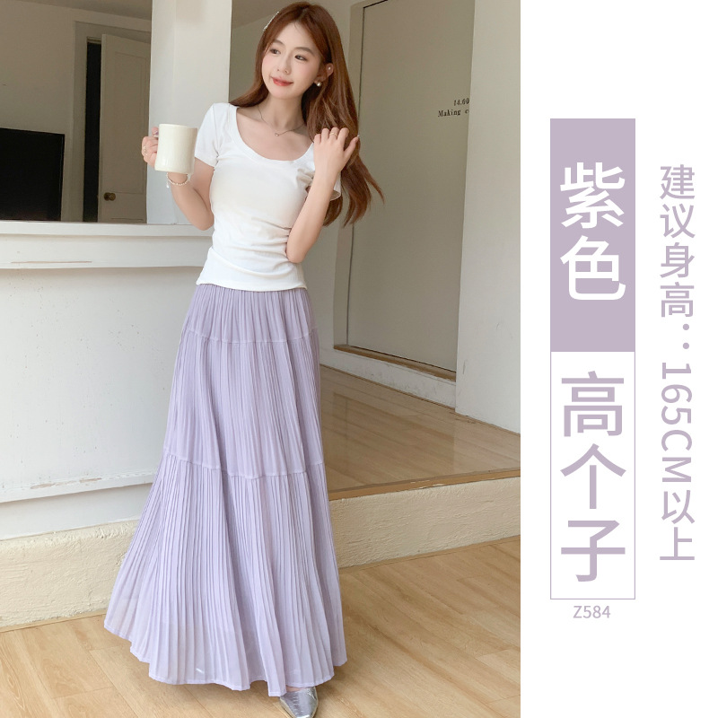 紫色半身长裙女夏季2025新款高腰仙女蛋糕裙小个子a字雪纺大摆裙