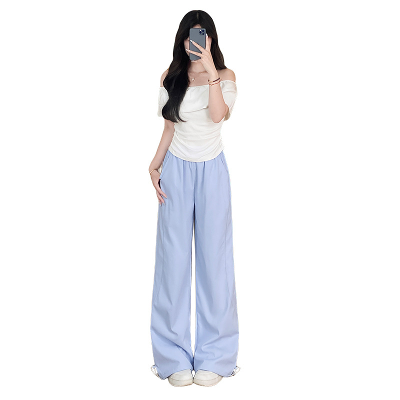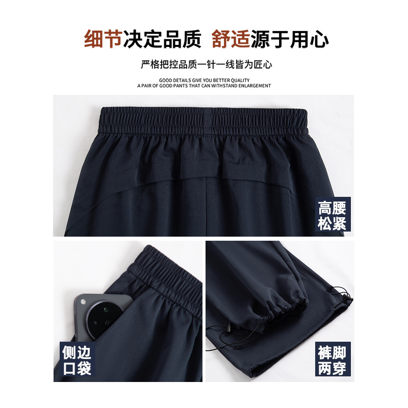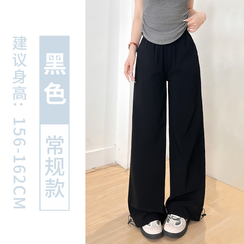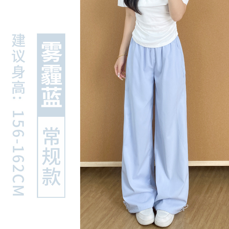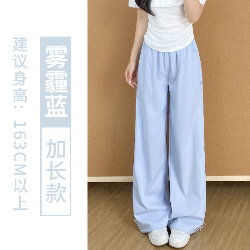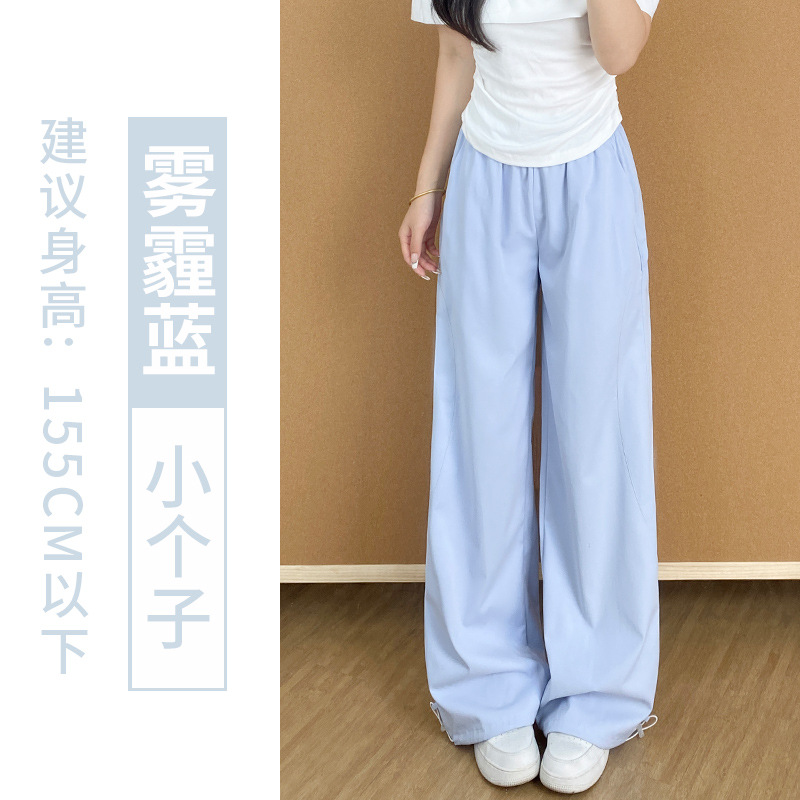 蓝色速干工装裤女2025新款夏季薄款直筒宽松小个子休闲阔腿运动裤