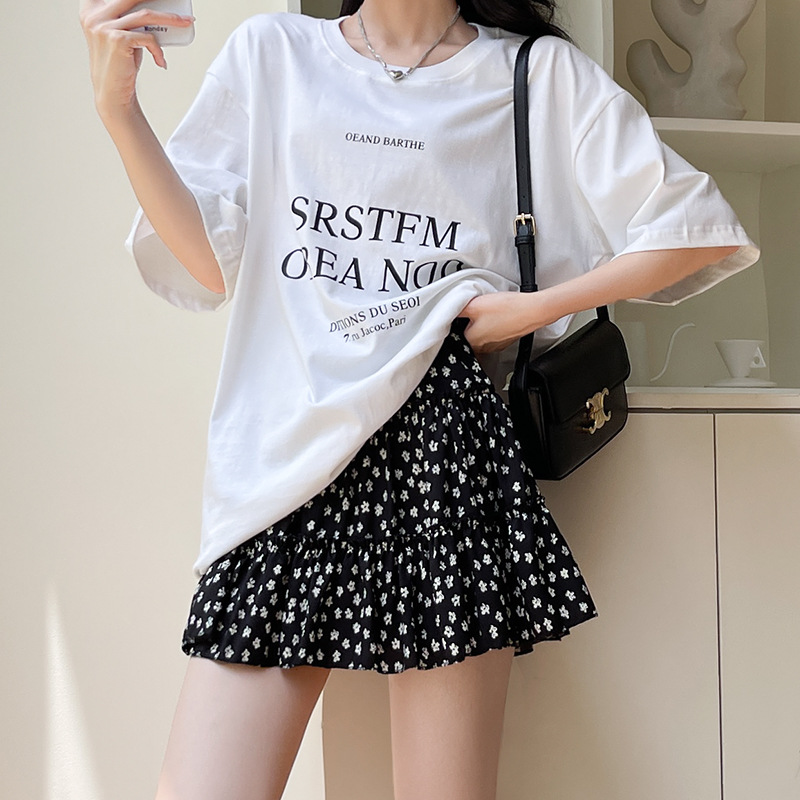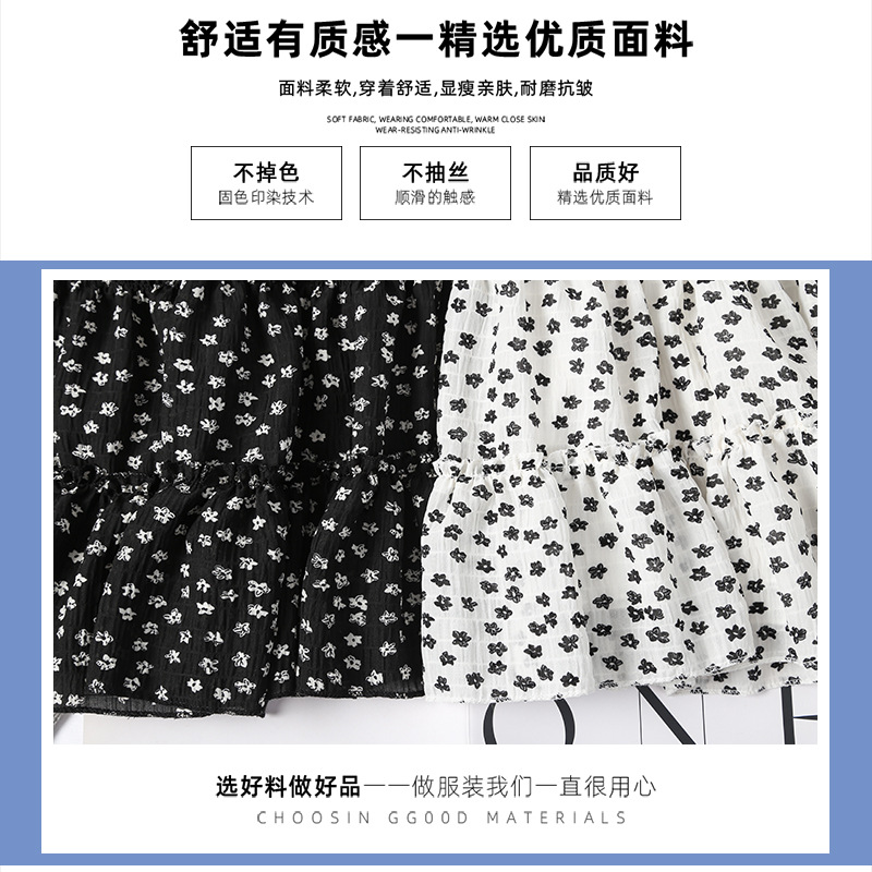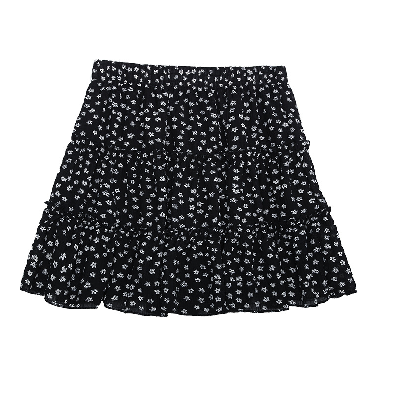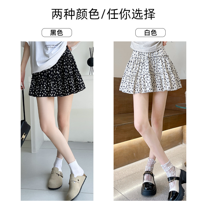 韩系碎花半身裙女春秋2025新款高腰a字黑色半裙小个子蛋糕短裙子