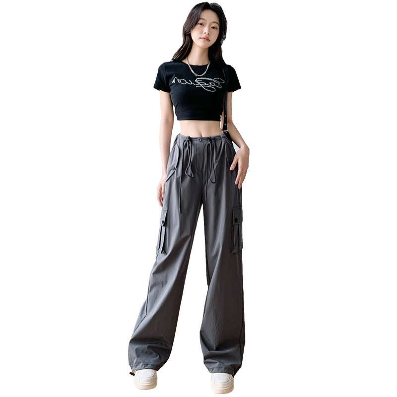 美式工装裤女秋季2025新款高腰休闲显瘦高级直筒卫裤小个子运动裤