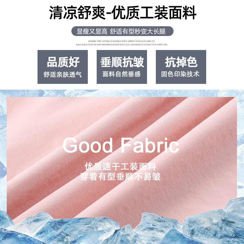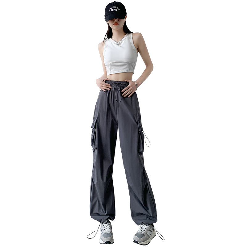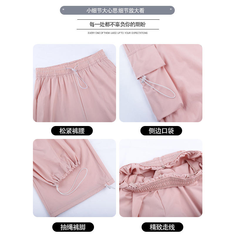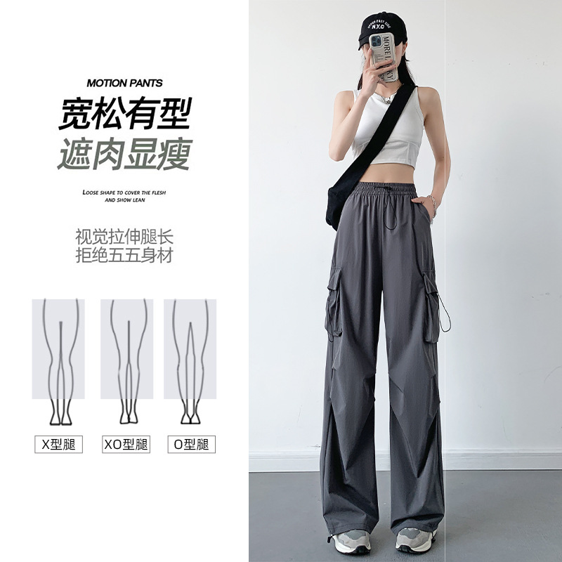 粉色速干工装裤女秋季薄款高腰显瘦直筒宽松阔腿休闲冰丝运动裤